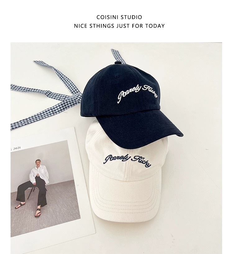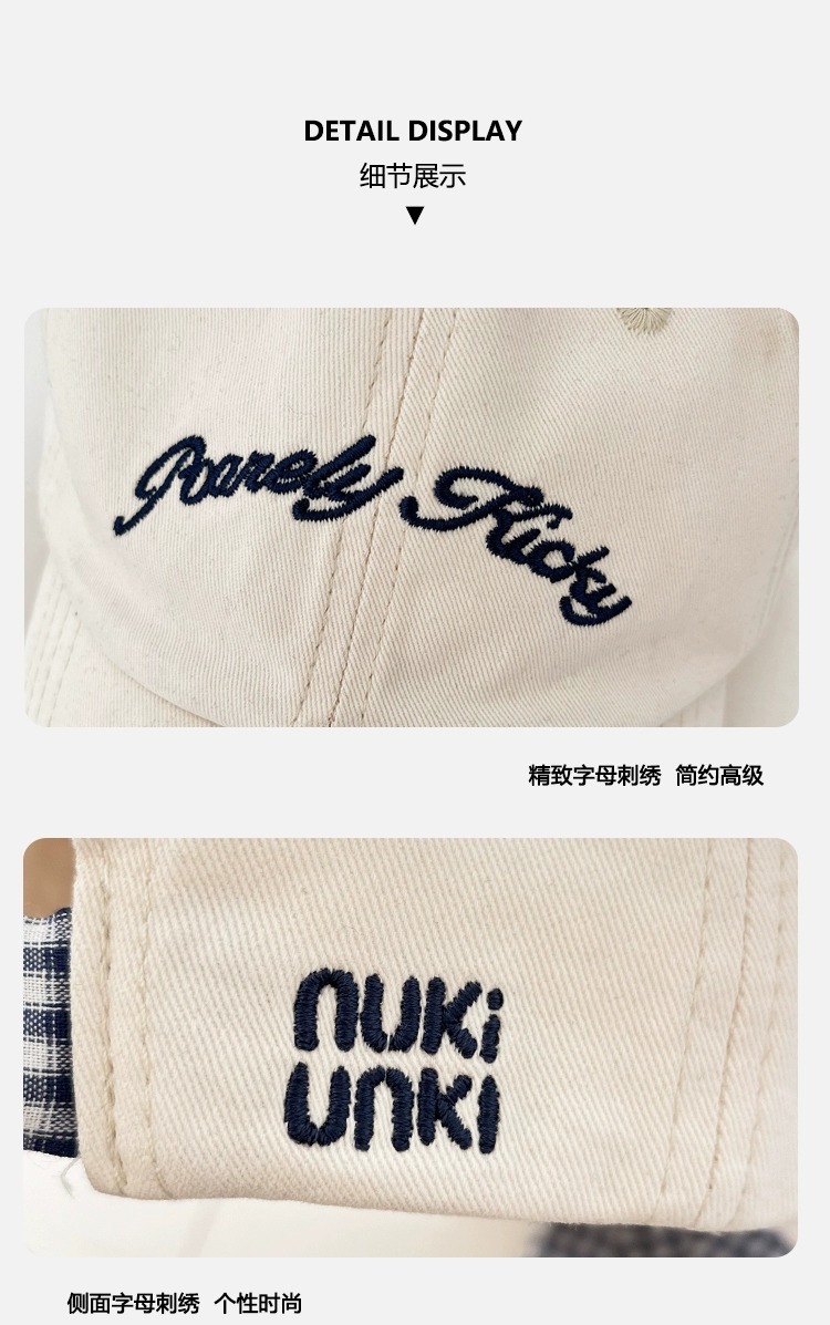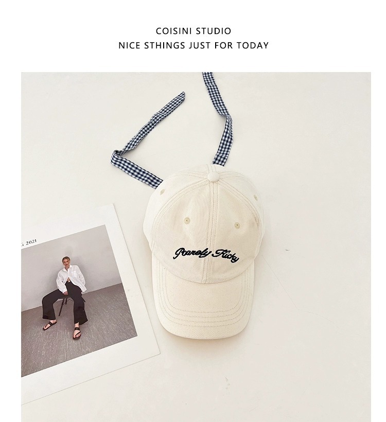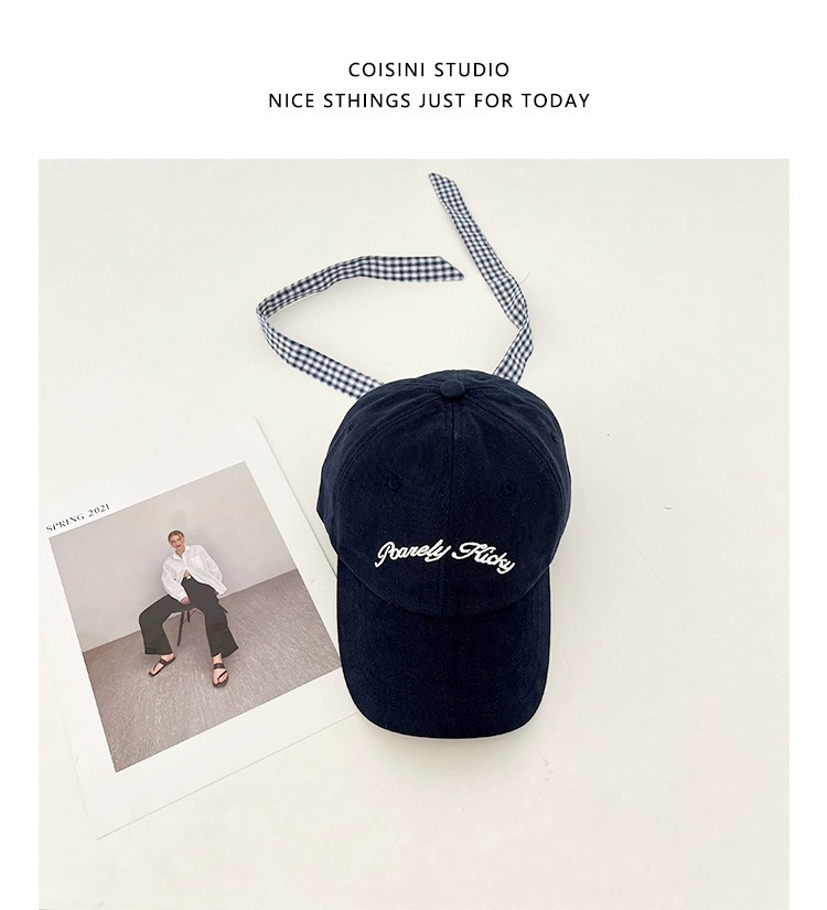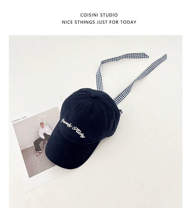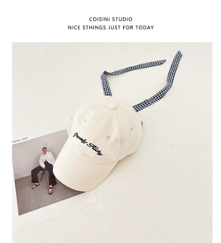 2025 새로운 디자인 miu 체크 무늬 나비 넥타이 피크 캡 봄 여름 문자 자수 차양 및 자외선 차단