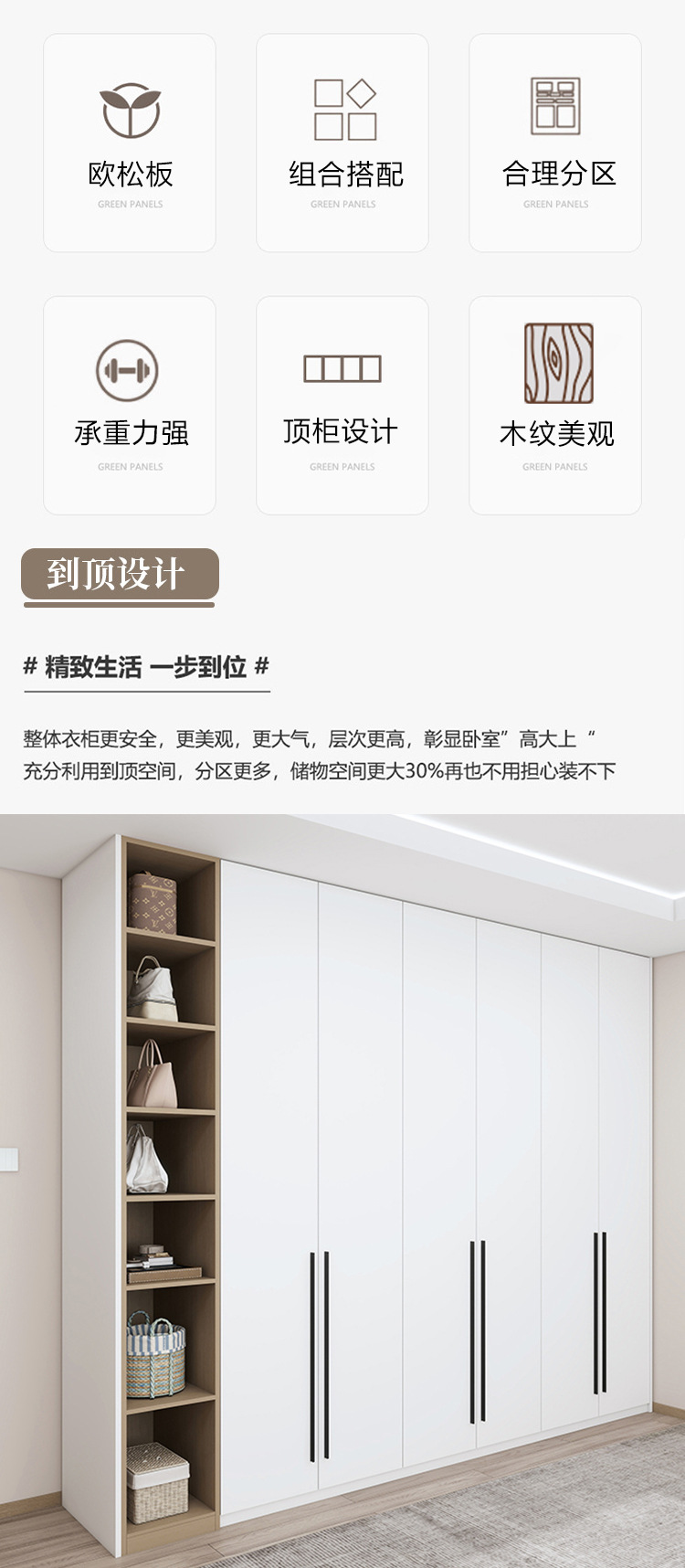 현대적인 미니멀리스트 홈 침실 파티클 보드 조합 오픈 도어 수납 옷장 초고층 옷장 옷장 한 도어에서 상단까지