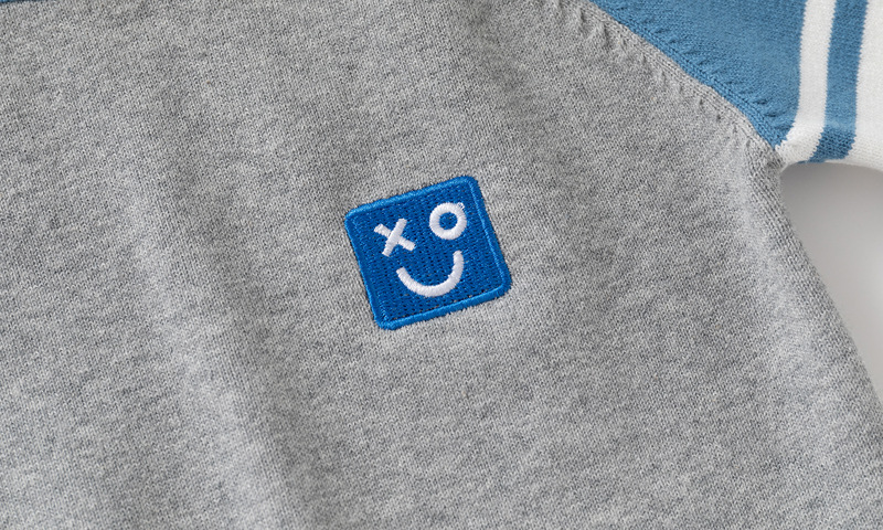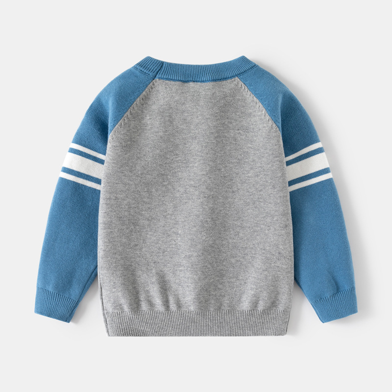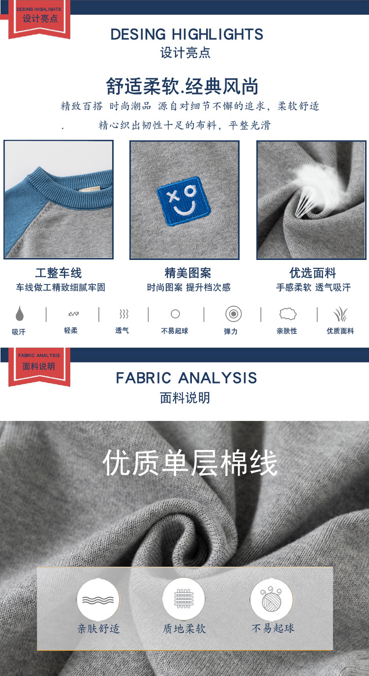2025 새로운 가을, 겨울 아동 의류 소년 단일 레이어 코튼 풀오버 스웨터 아기 웃는 얼굴 수 놓은 라글란 슬리브 스웨터스토어 가기