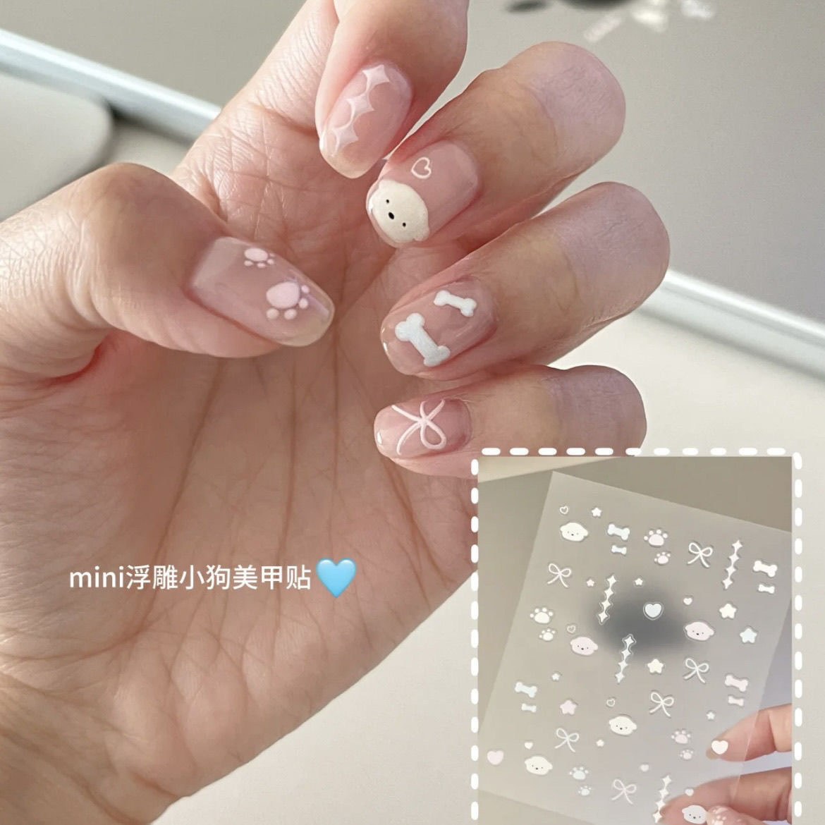 Xiaohongshu 같은 스타일 ins 스타일 귀여운 양각 강아지 네일 아트 스티커 핸드북 스티커 diy 스티커스토어 가기
