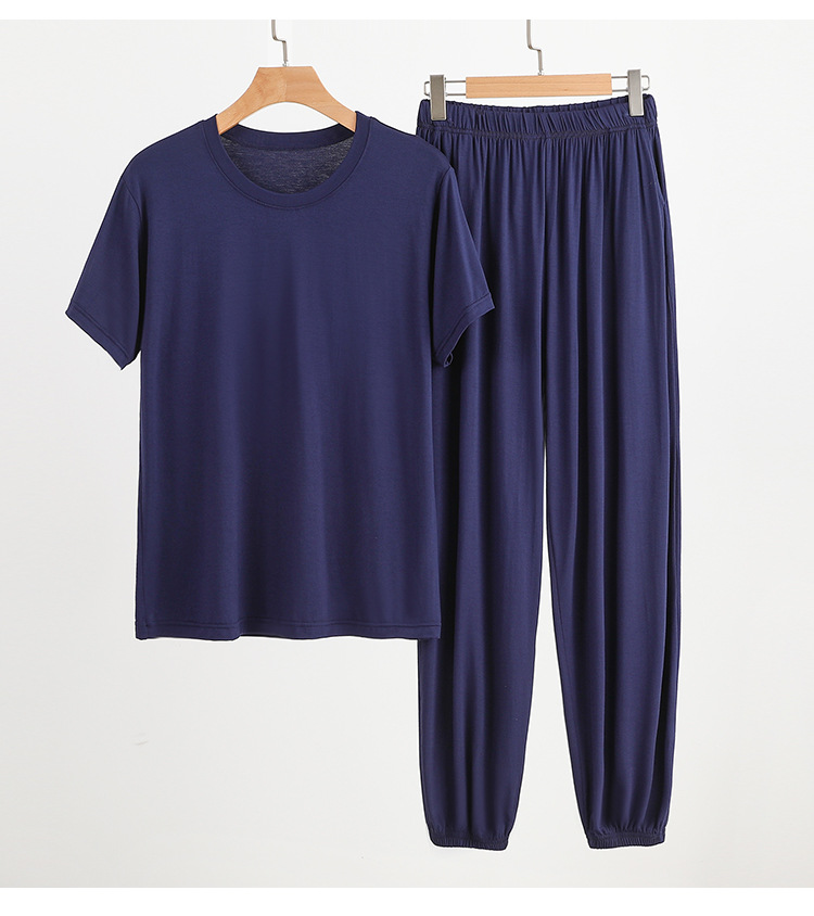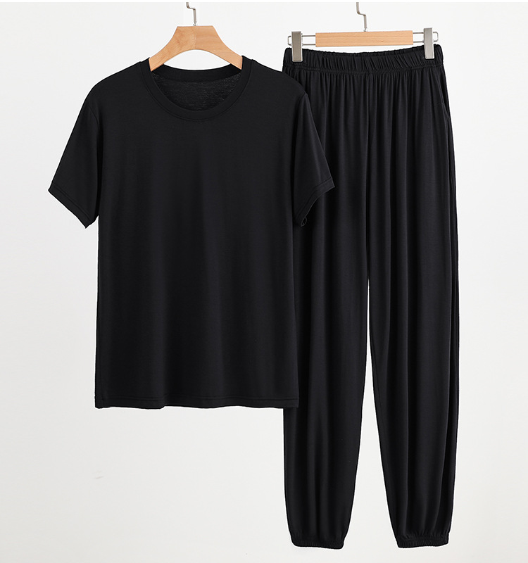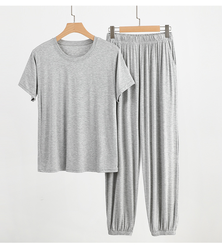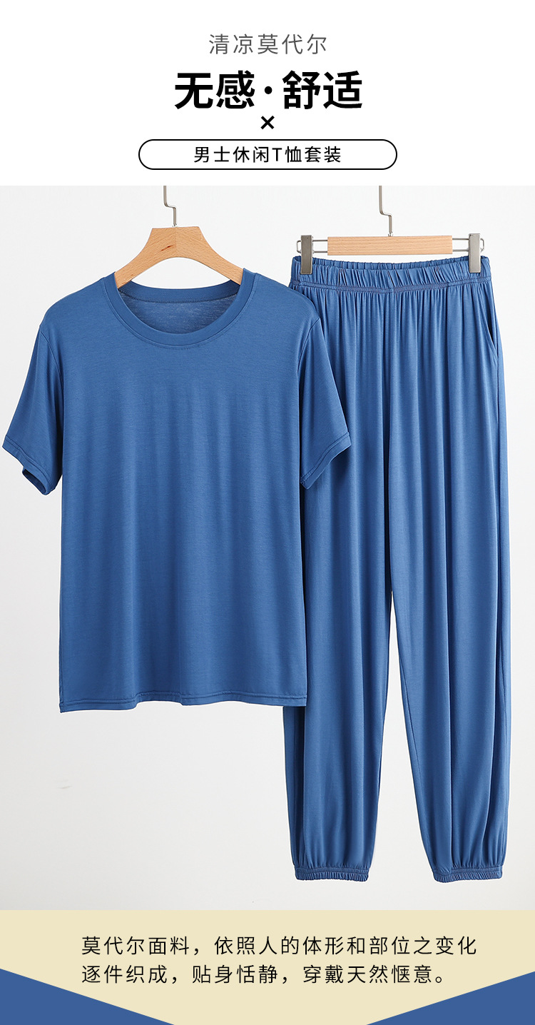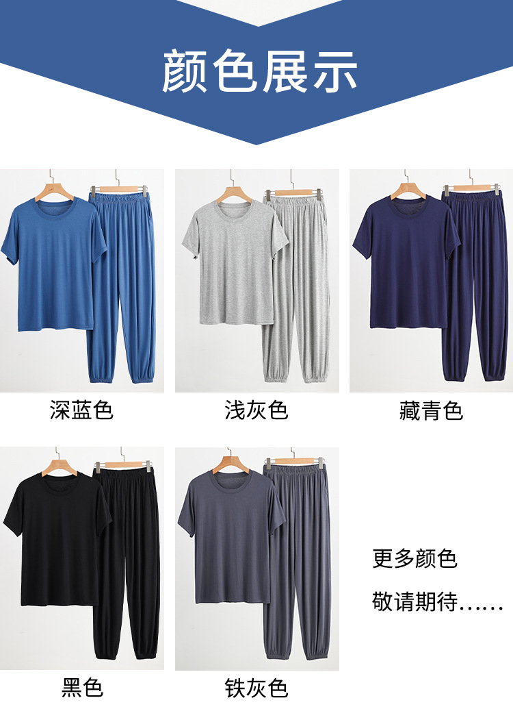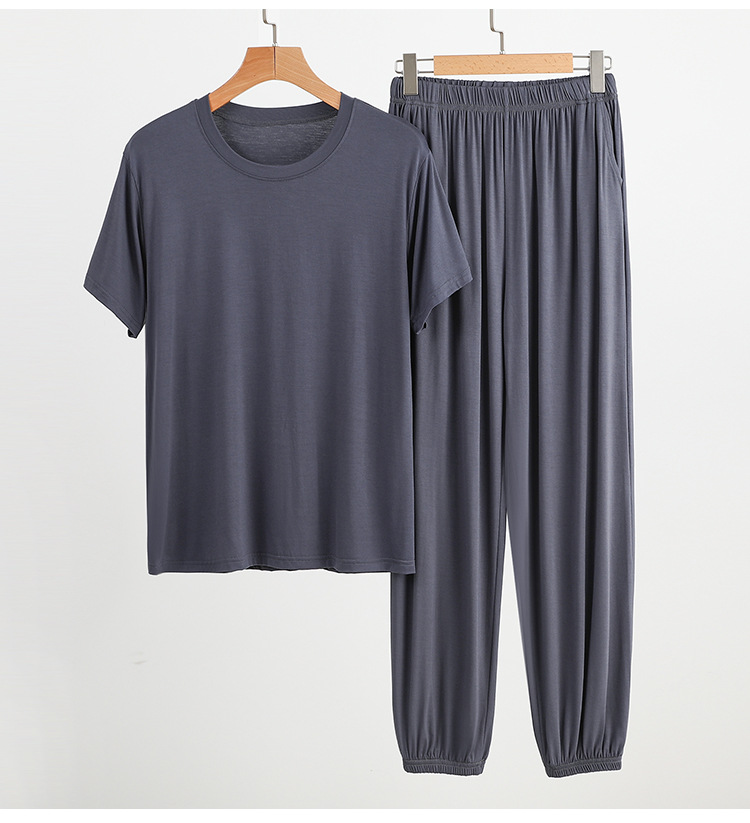 플러스 사이즈 남성 홈웨어 여름 루즈 모달 티셔츠 모기 방지 바지 겉옷 모달 파자마 파자마 세트스토어 가기