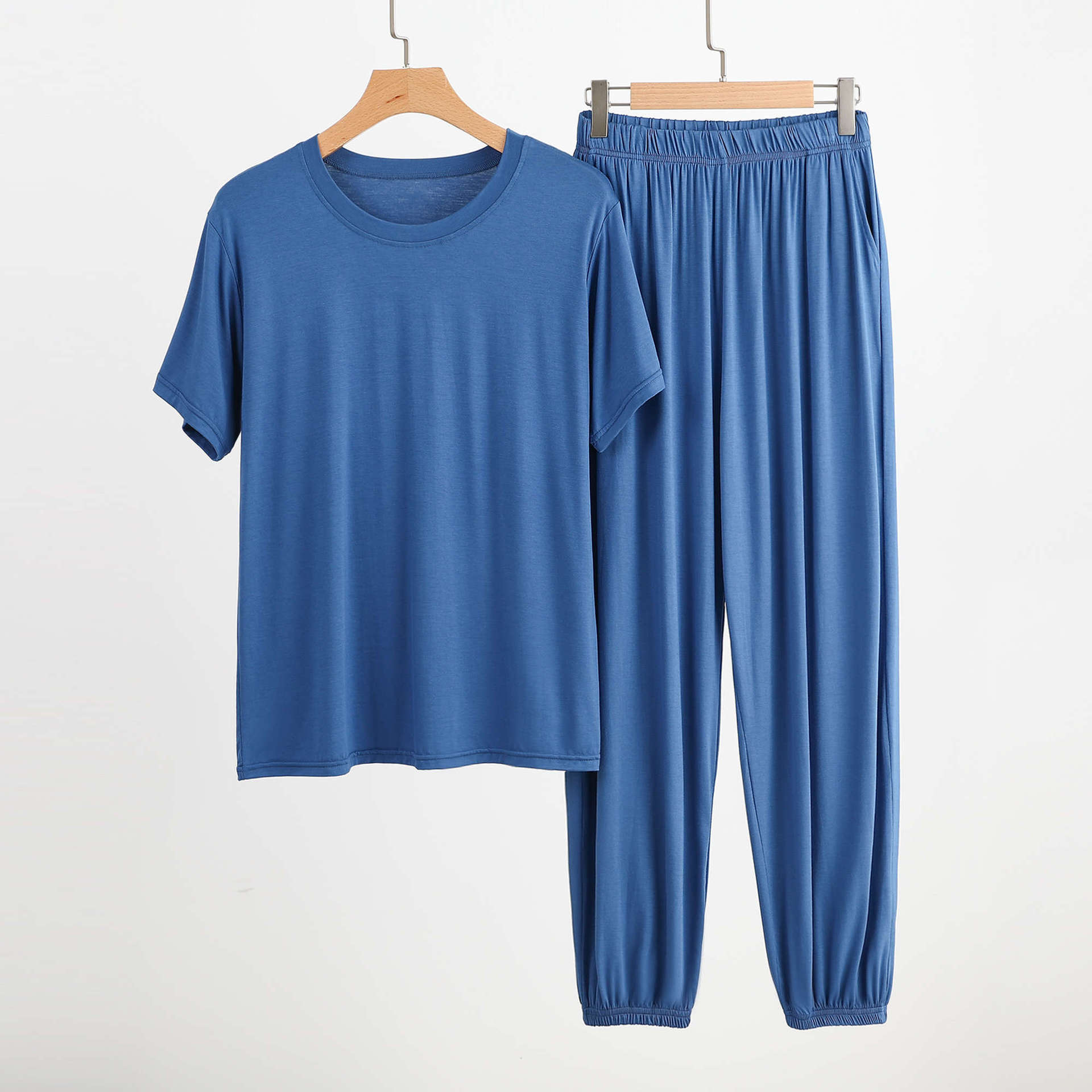 플러스 사이즈 남성 홈웨어 여름 루즈 모달 티셔츠 모기 방지 바지 겉옷 모달 파자마 파자마 세트
