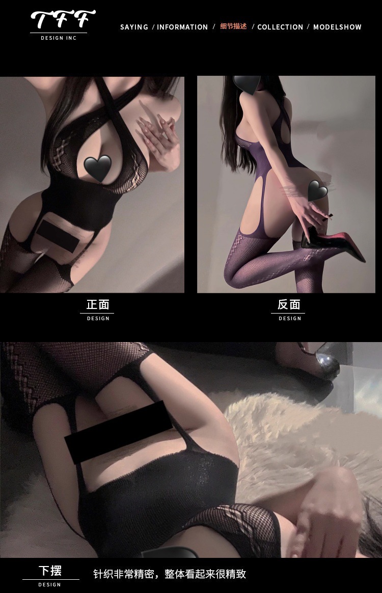 Sweet Hair Pure Desire 크로스 홀터넥 망사 스타킹 찢어진 속이 빈 점프 슈트 섹시한 잠옷 탈부착이 필요 없는 여성용 스타킹 오픈 가랑이