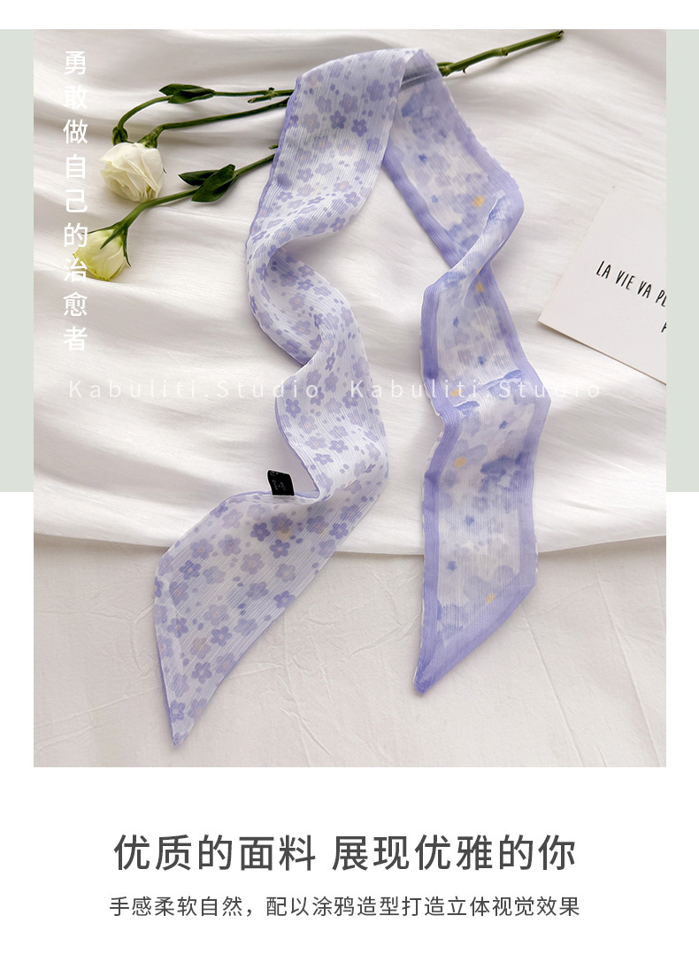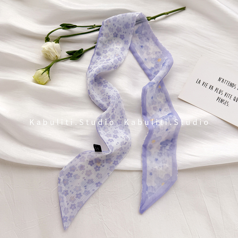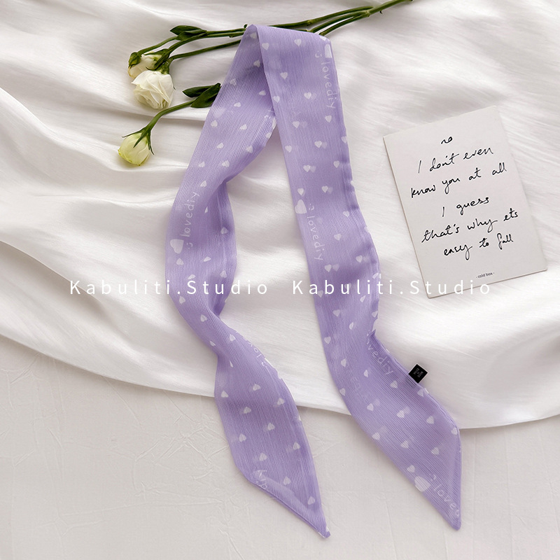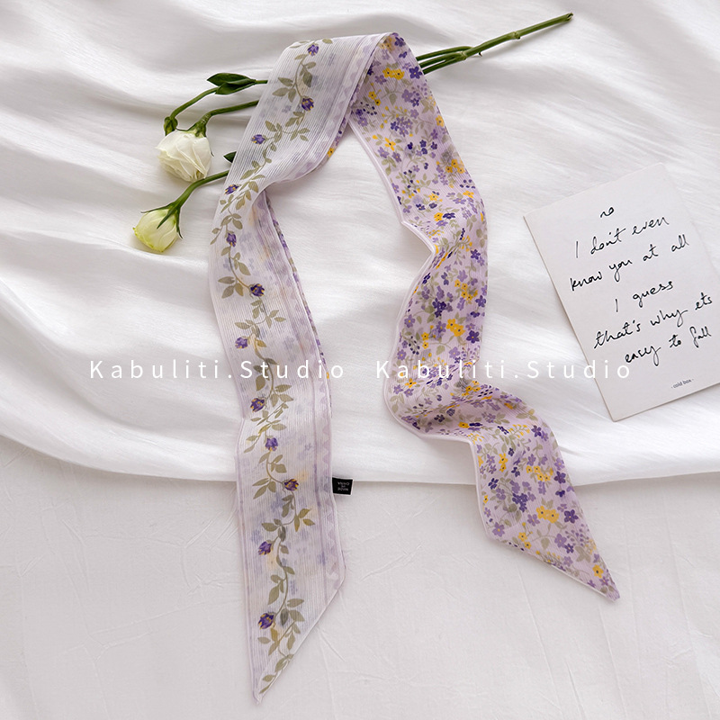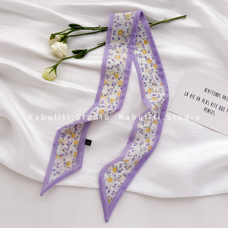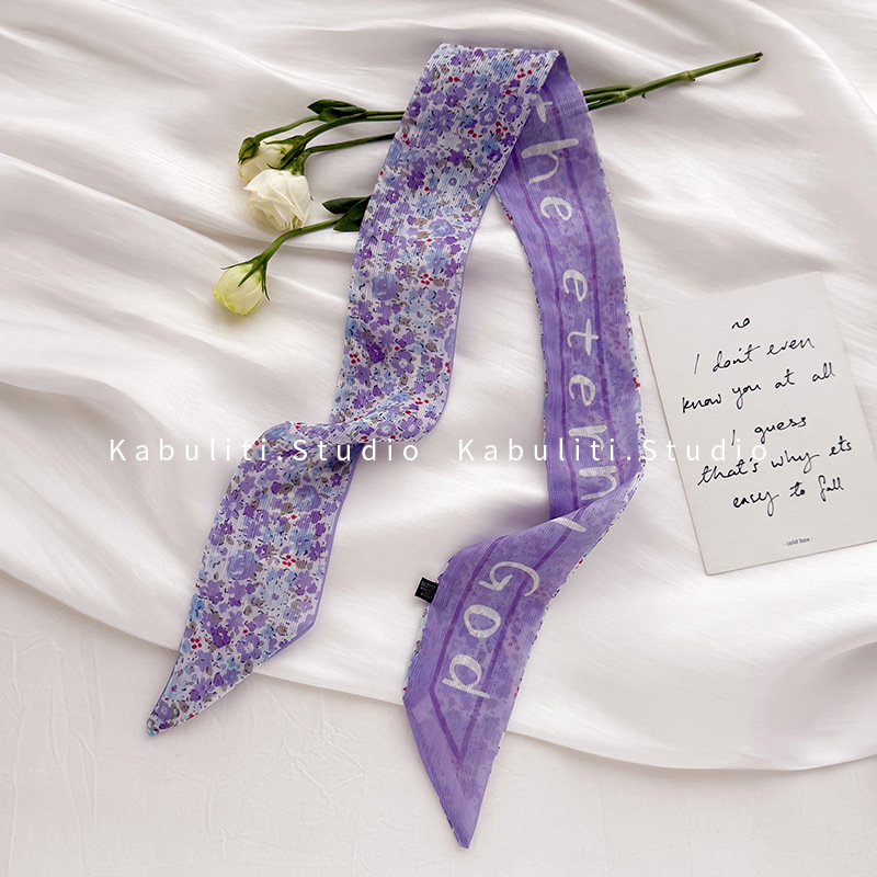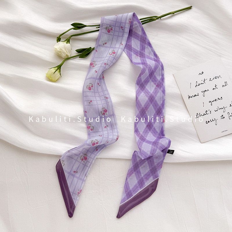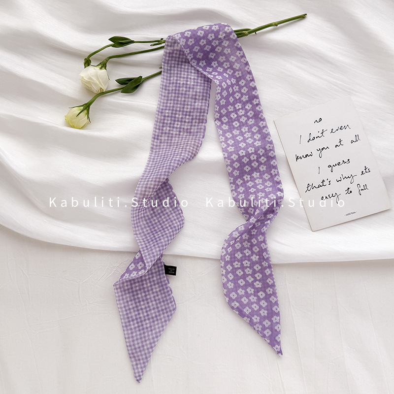 여성용 작은 긴 얇은 스카프, 보라색 목 보호대, 머리 묶기 스카프, 리본, 가방 리본, 얇은 스카프스토어 가기