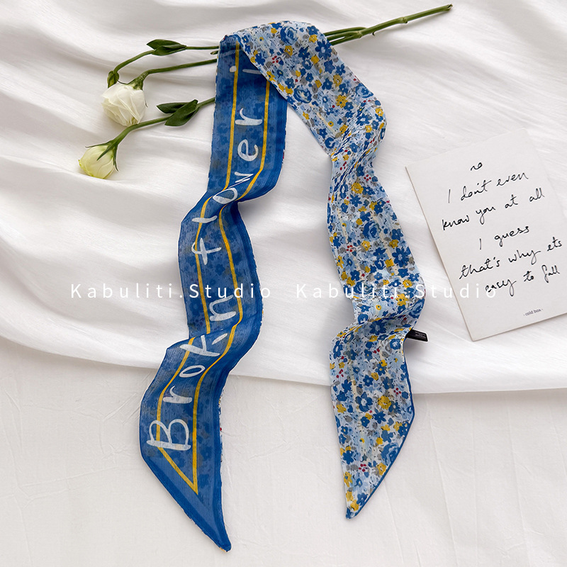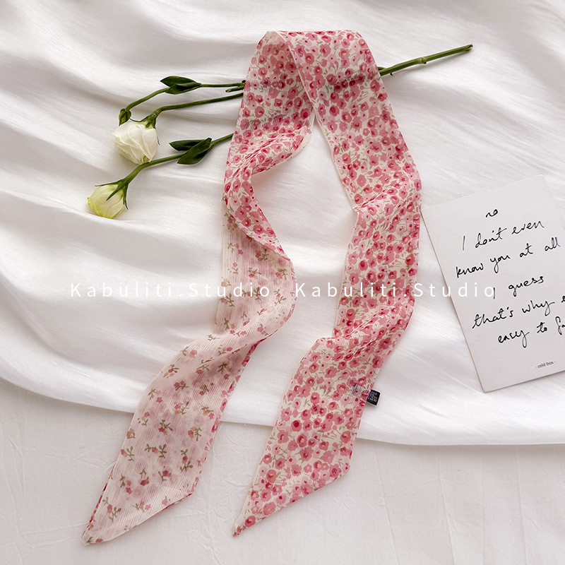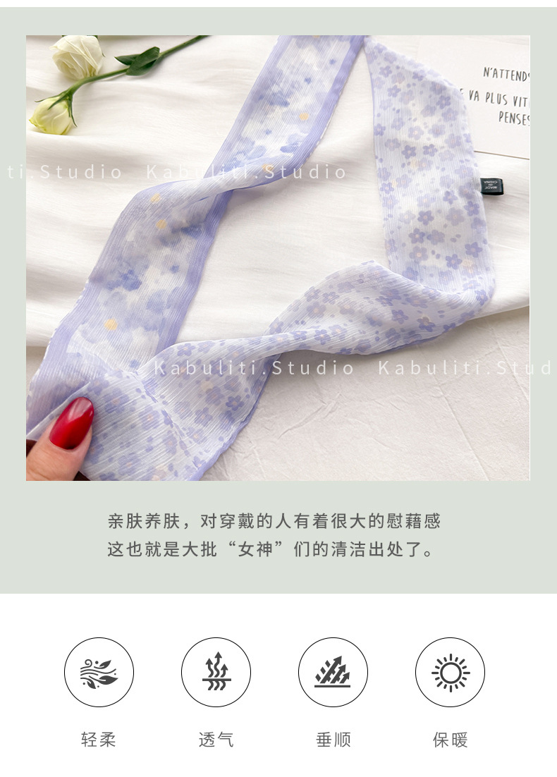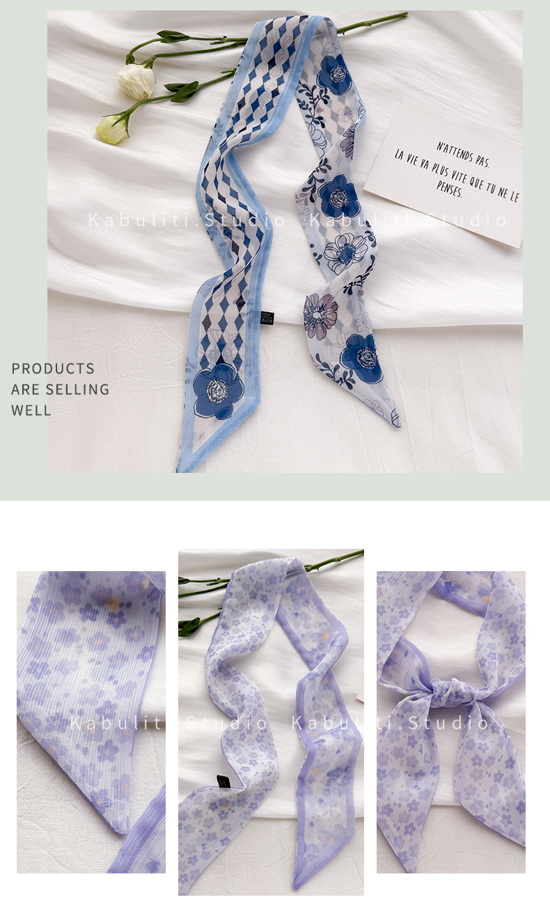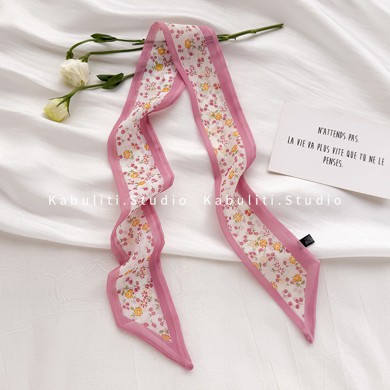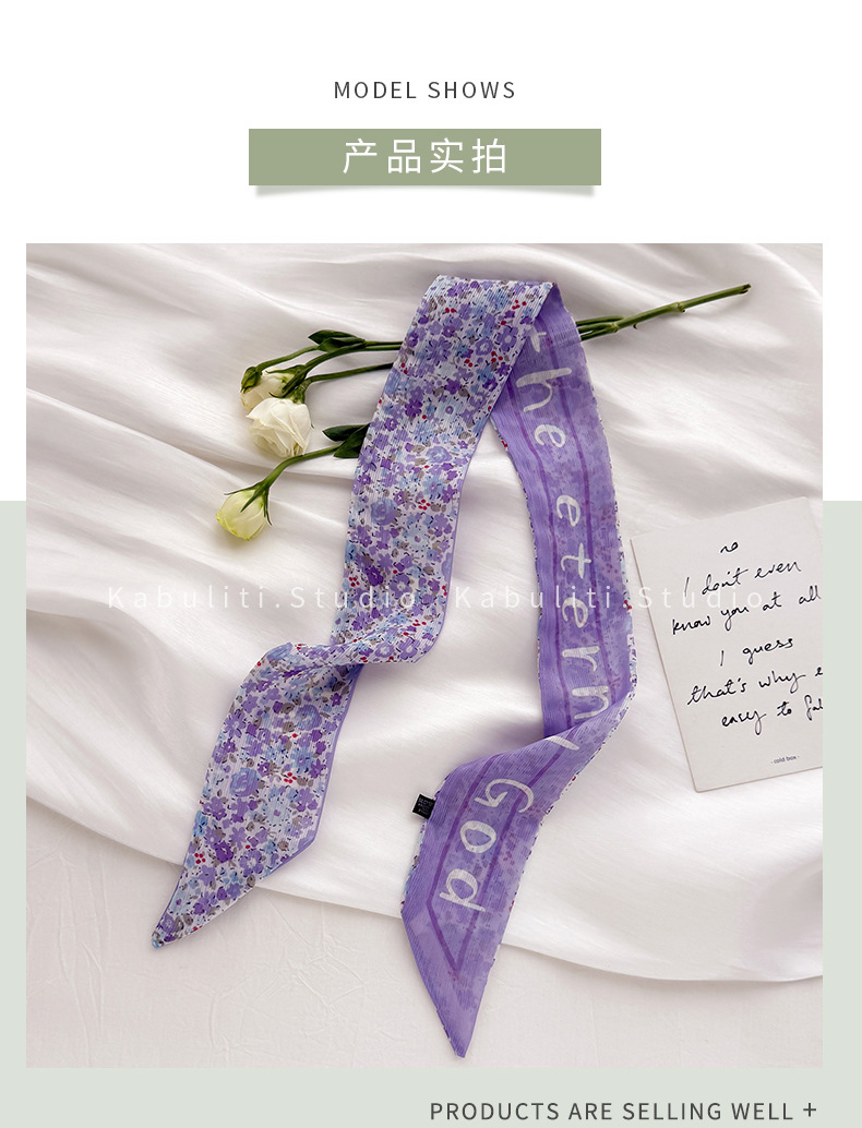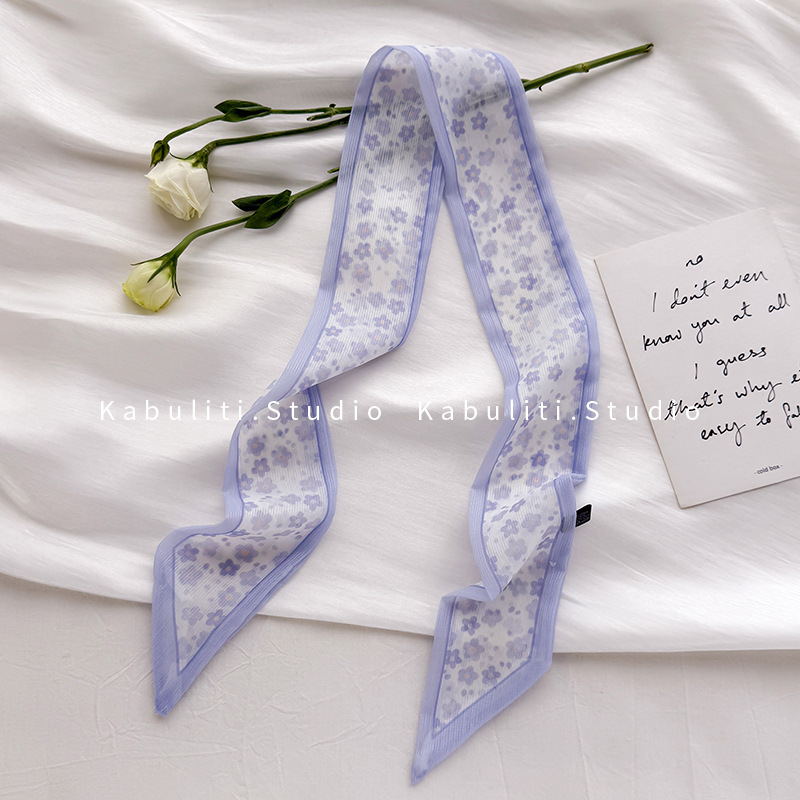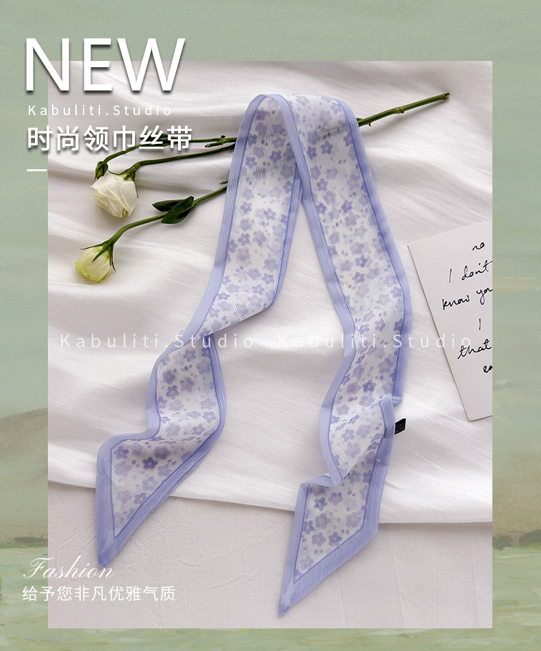 여성용 작은 긴 얇은 스카프, 보라색 목 보호대, 머리 묶기 스카프, 리본, 가방 리본, 얇은 스카프스토어 가기