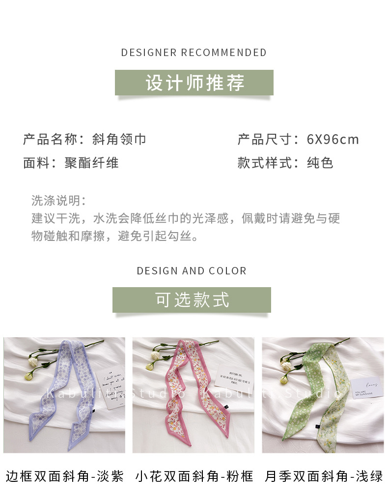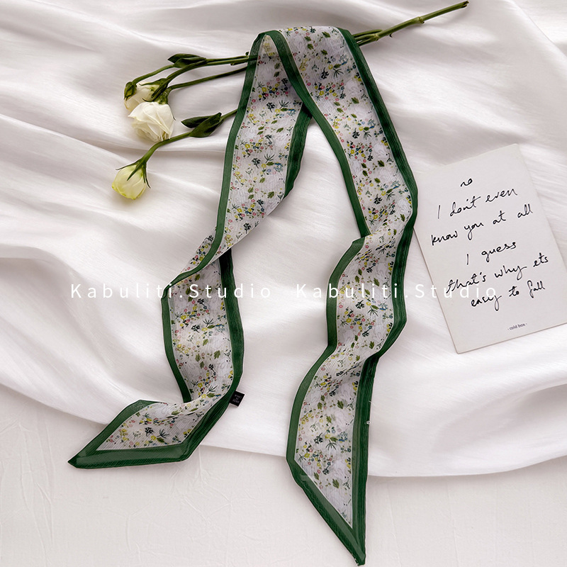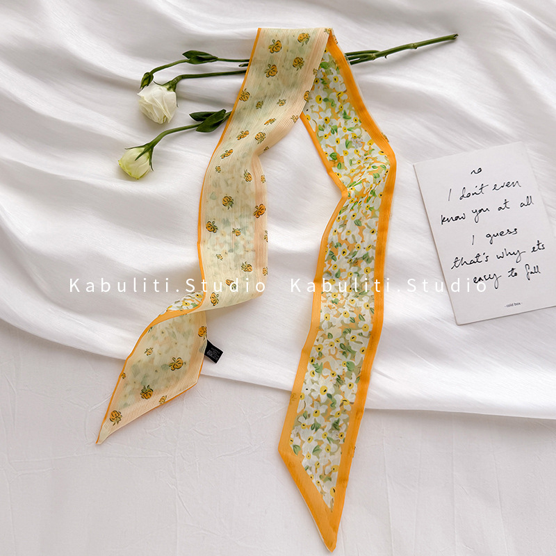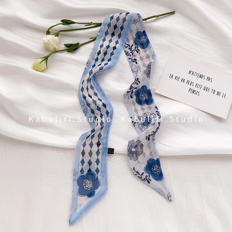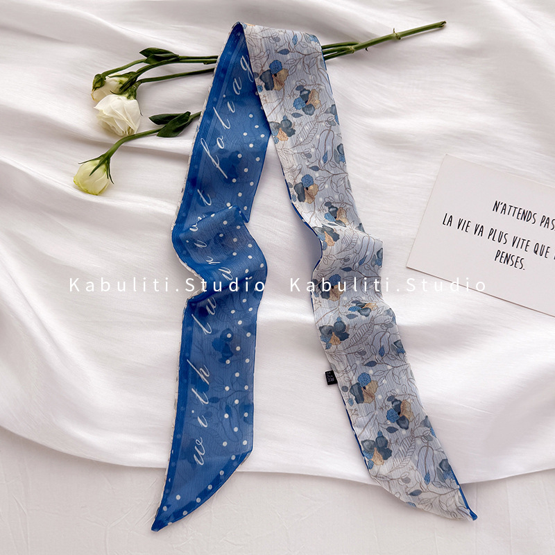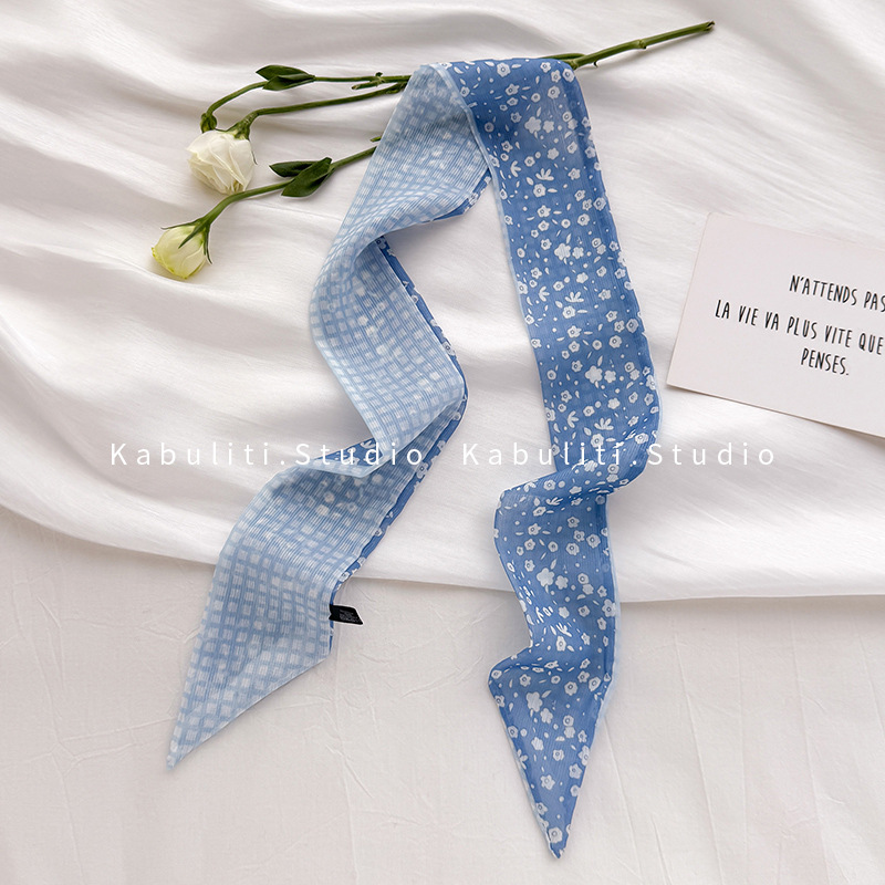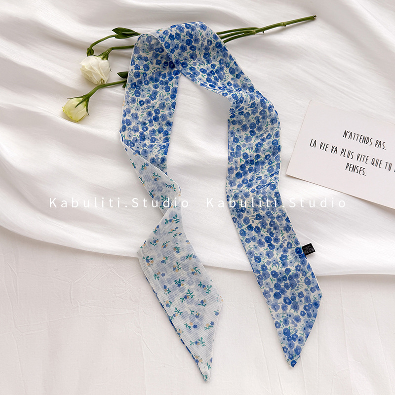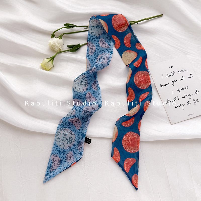 여성용 작은 긴 얇은 스카프, 보라색 목 보호대, 머리 묶기 스카프, 리본, 가방 리본, 얇은 스카프스토어 가기