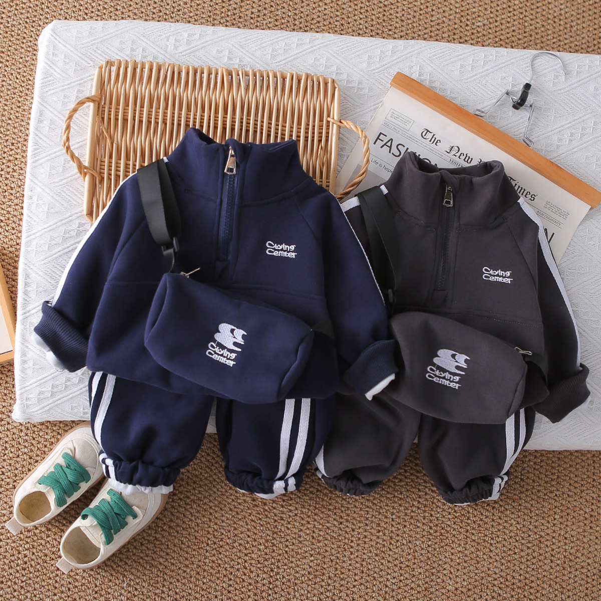 소년 긴팔 운동복 정장 2025 가을 새로운 운동복 캐주얼 스포츠 투피스 세트 1-5 세 소년 의류스토어 가기