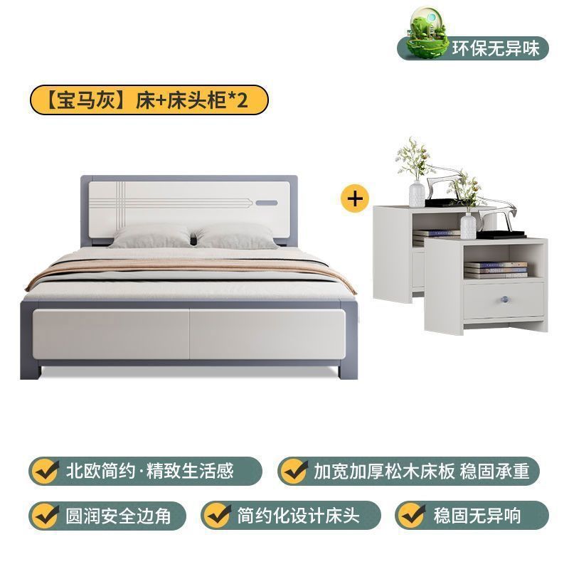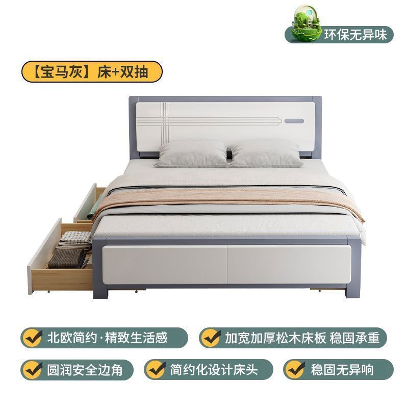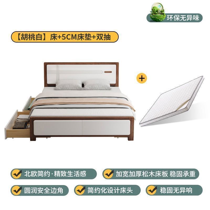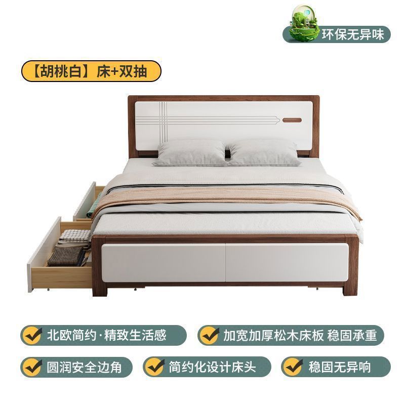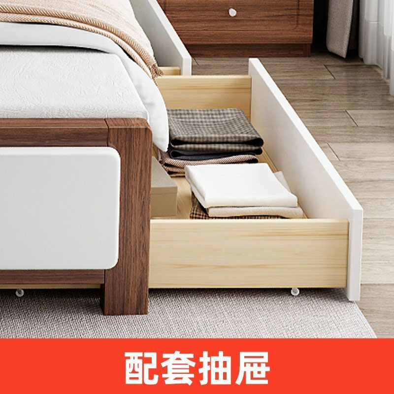 마스터 침실 더블 침대 임대 주택 싱글 수납 침대 웨딩 침대 전체 원목 침대 1.5m 가정용 심플 중국 스타일 1.8