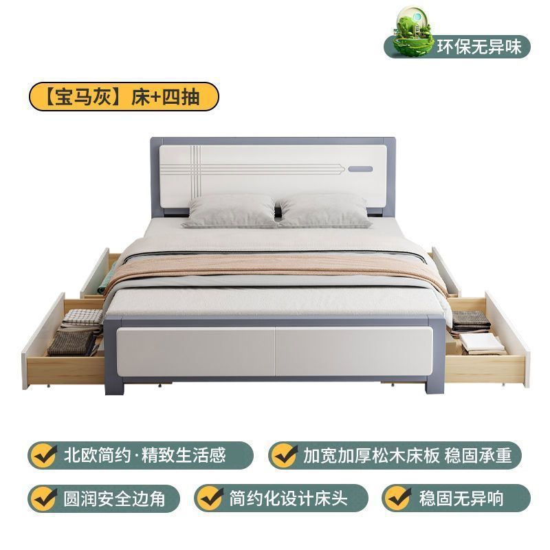 마스터 침실 더블 침대 임대 주택 싱글 수납 침대 웨딩 침대 전체 원목 침대 1.5m 가정용 심플 중국 스타일 1.8스토어 가기