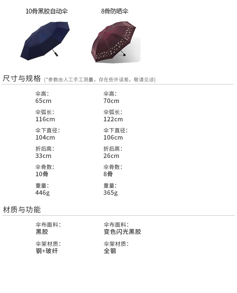 비즈니스 심플 솔리드 컬러 엣지 10본 더블 플러스 다크 파라솔 비 또는 샤인 파라솔 비닐 자외선 차단제스토어 가기
