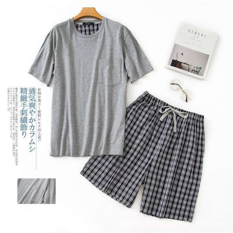 【대행배송】남성 홈웨어 세트 반팔 반바지 여름 잠옷 체크무늬 반바지스토어 가기