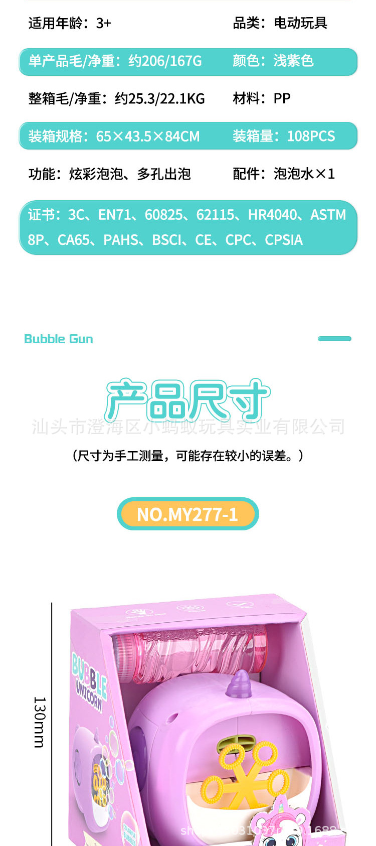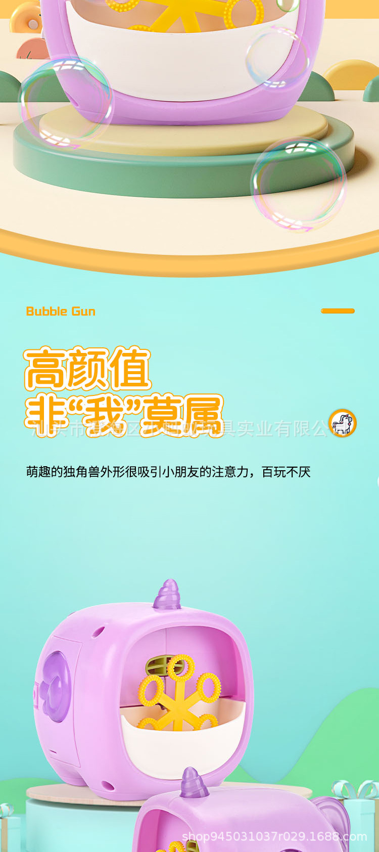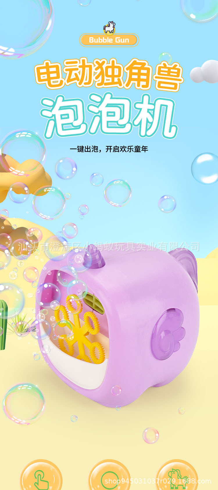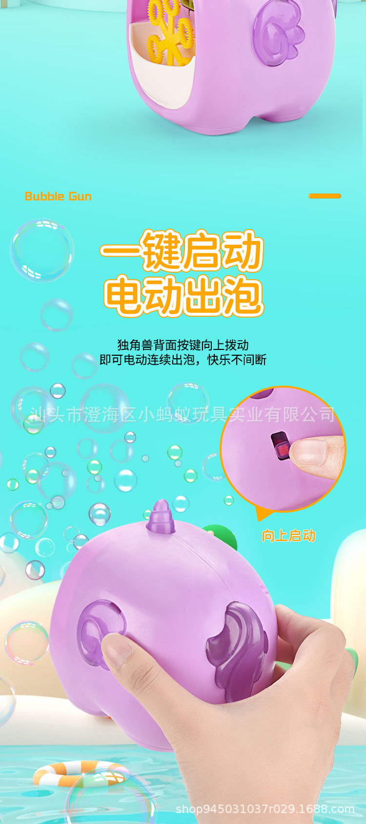 뜨거운 판매 전기 와이퍼 유니콘 버블 머신 다채로운 다공성 원 클릭 버블 야외 어린이 버블 장난감