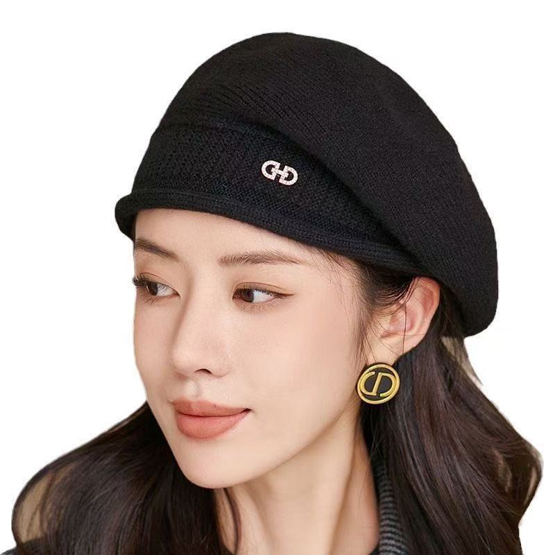 여성을 위한 가을 겨울 모자, 단색 다용도 니트 모직 모자, 겨울 따뜻한 양모 베레모, 두꺼운 모자
