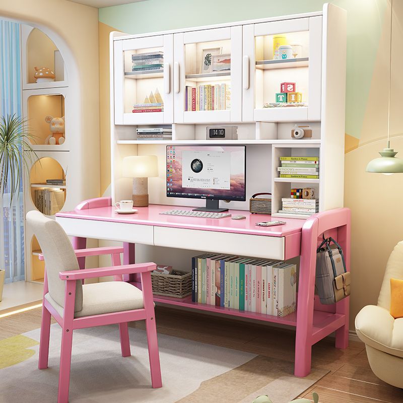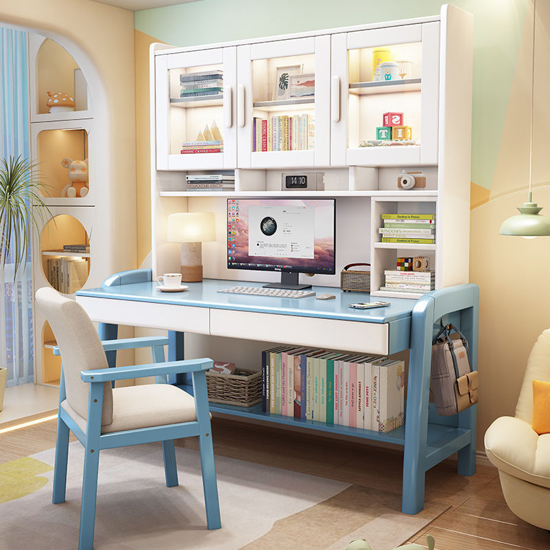 간단한 현대 연구 단단한 나무 책상 홈 침실 사무실 컴퓨터 책상 학생 책장 책장 통합 책상스토어 가기
