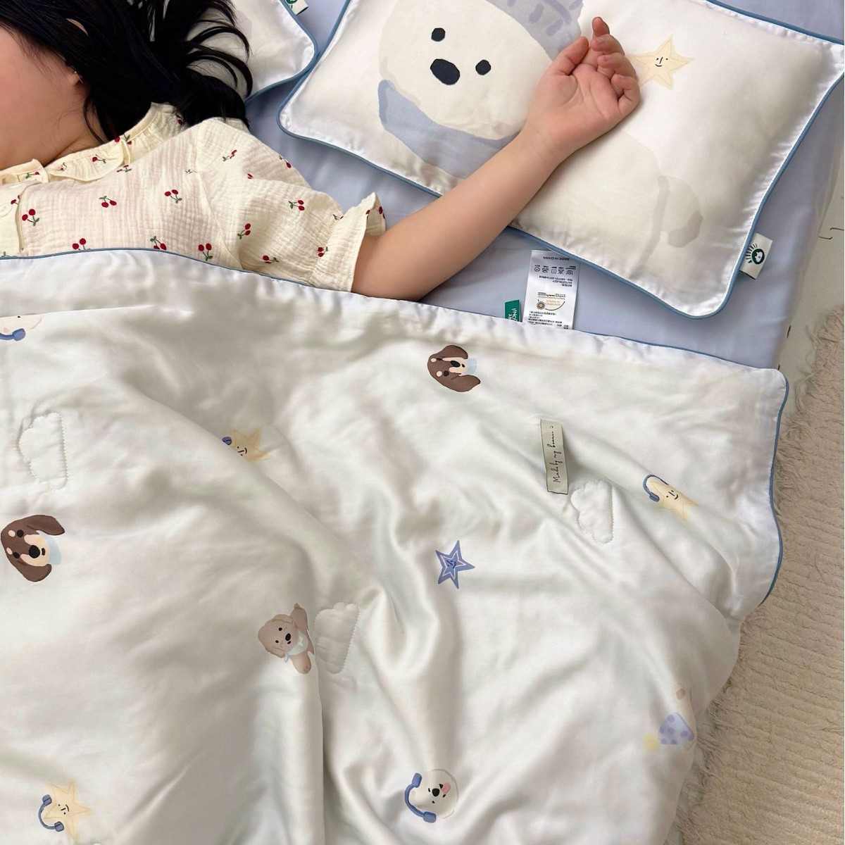 클래스 A 100 카운트 텐셀 여름 이불 아기 및 어린이 이불 만화 어린이 얇은 이불 유치원 에어컨 이불 알몸으로 자는 실크 이불스토어 가기