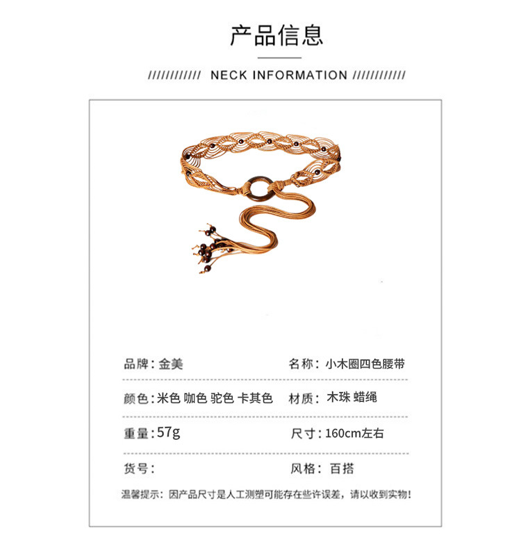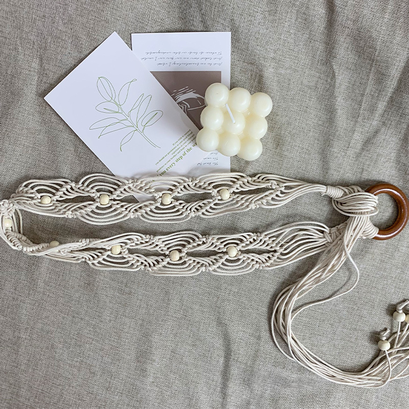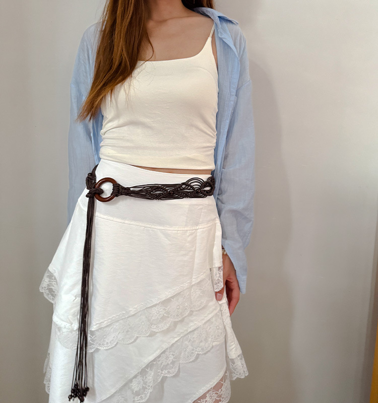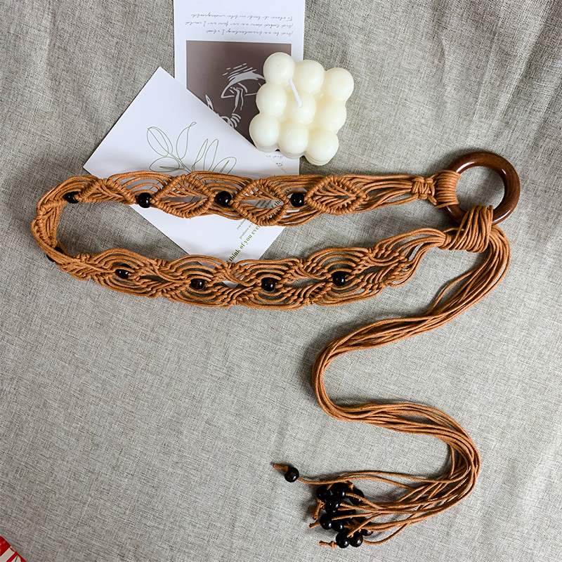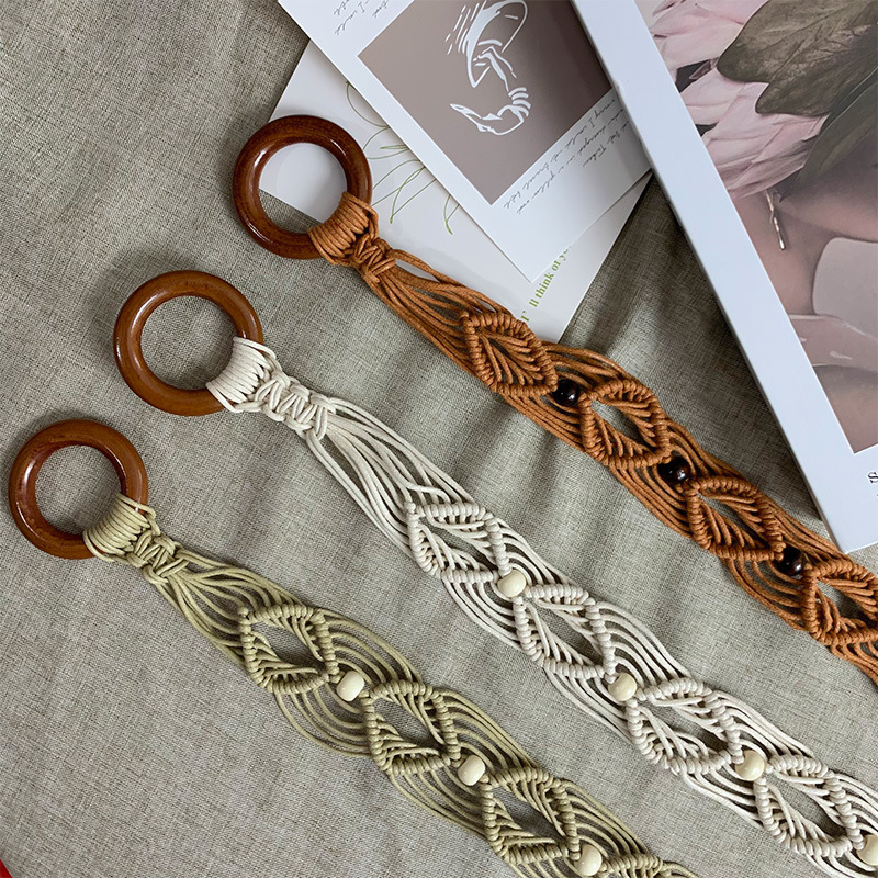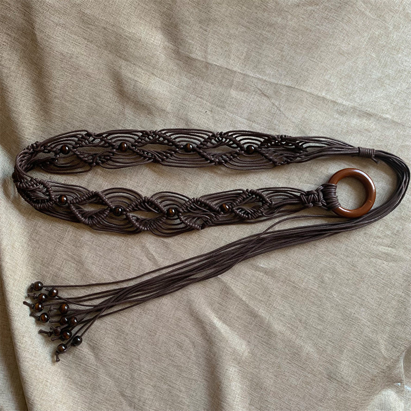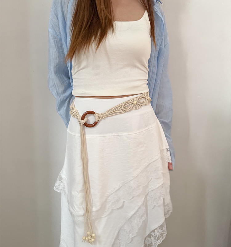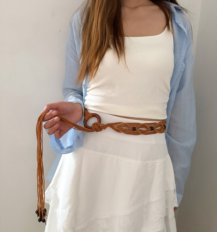 스커트가 있는 여성용 에스닉 스타일 복고풍 짠 벨트, 캐주얼하고 다재다능한 장식 드레스, 매듭 로프 허리 체인 액세서리