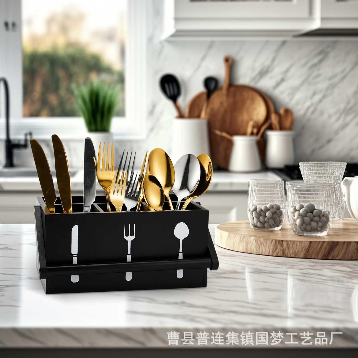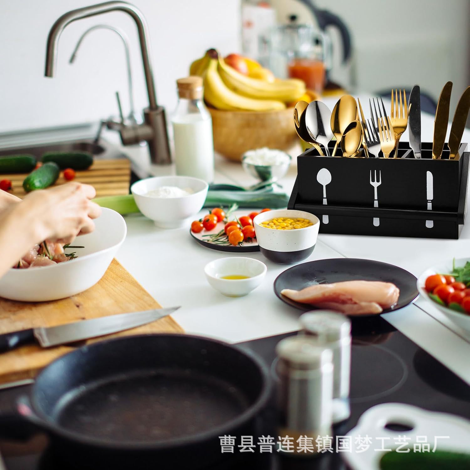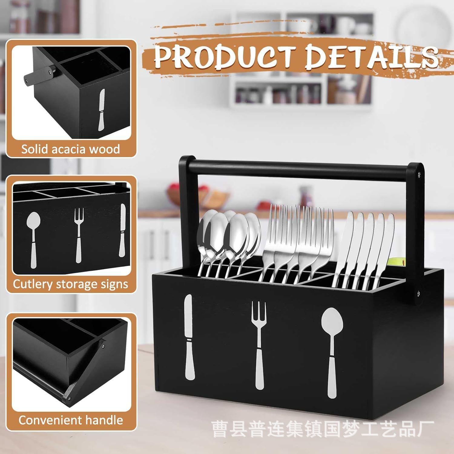 아마존 국경 간 휴대용 식기 보관 상자 홈 주방 데스크탑 분리 단단한 나무 칼과 포크 보관 상자스토어 가기