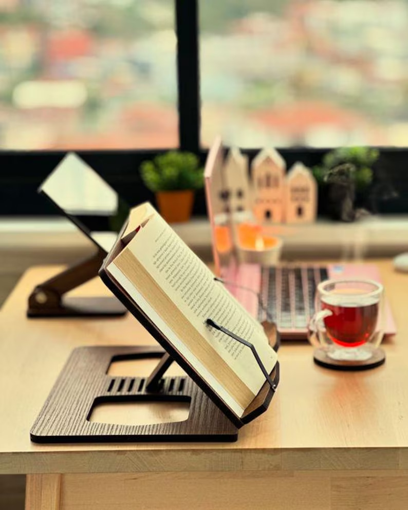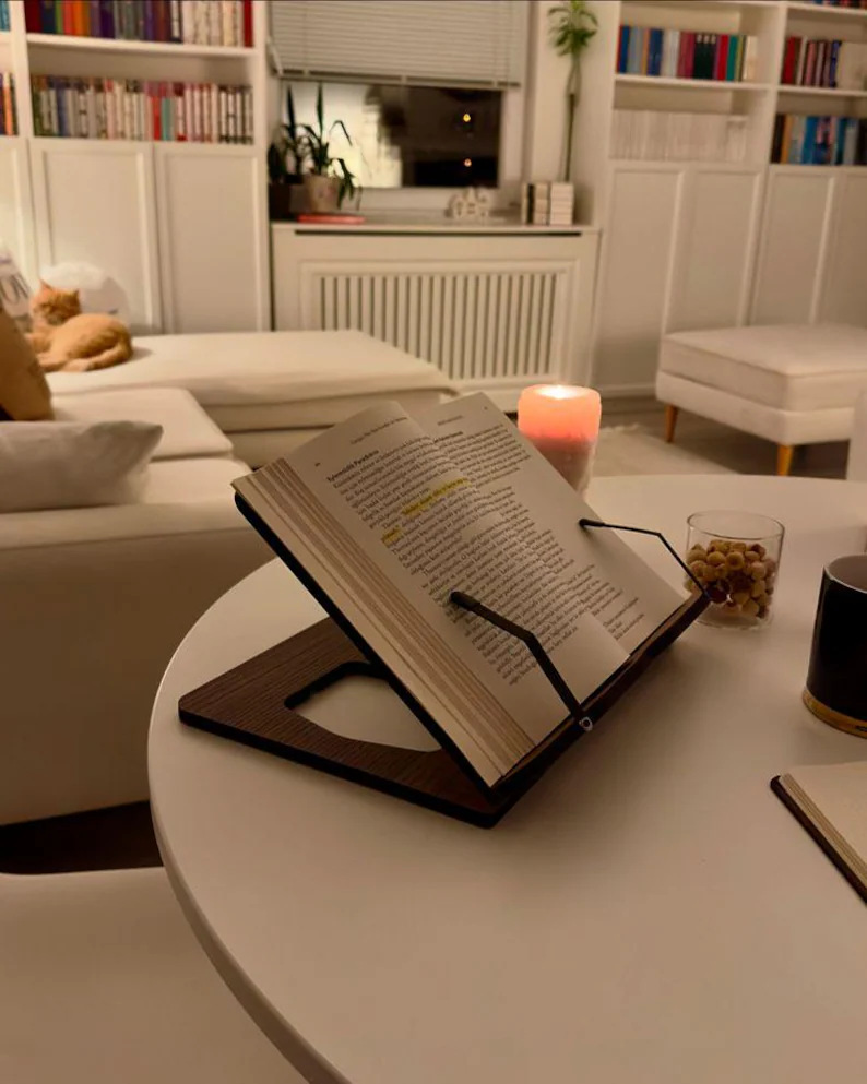 소스 공장에서 맞춤형 목재 책장 및 조리법 스탠드, 휴대용 접이식 조리법 스탠드, 각도 조절 가능스토어 가기