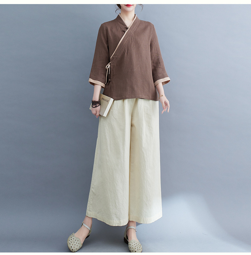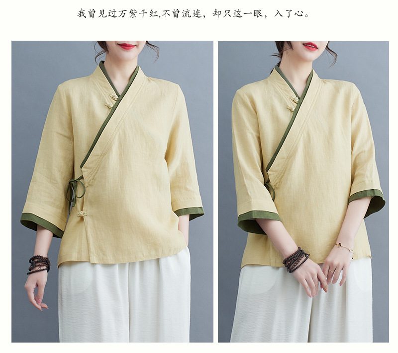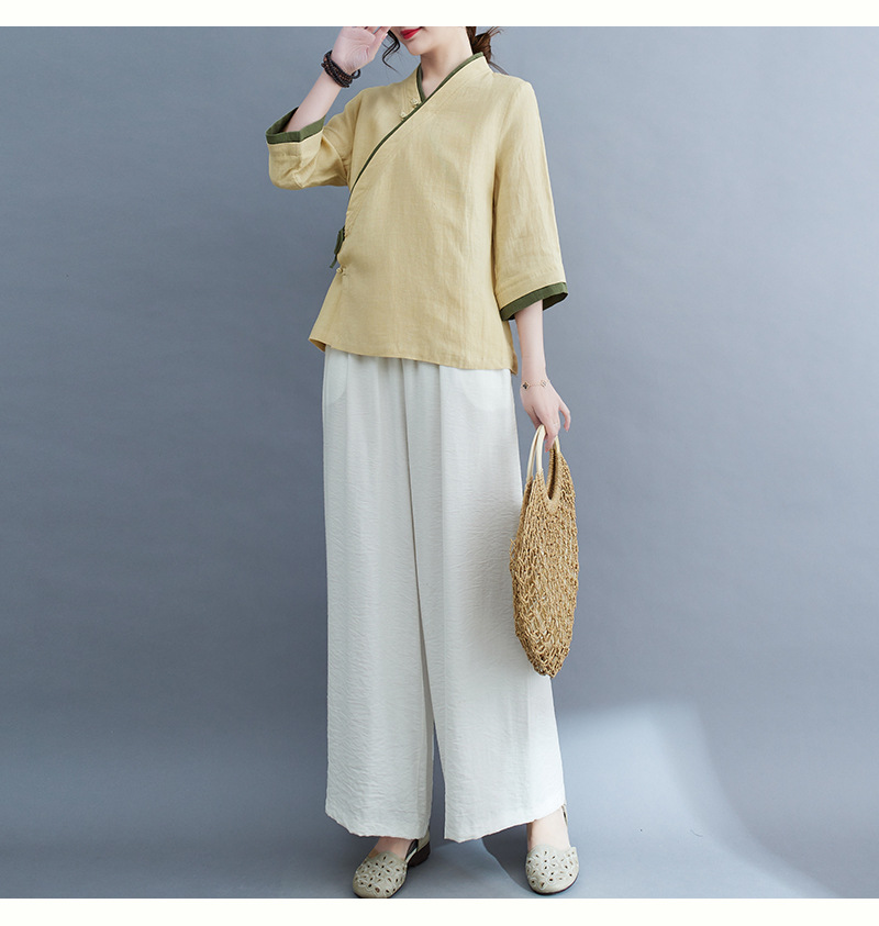 2025 봄 여름 복고풍 당나라 정장과 한복 개선 버전 차인복 여성용 선 명상복 여성용 중국식 탑스토어 가기