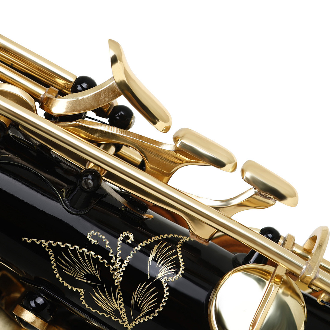 产品名称:SLADE雷德S98高音萨克斯小弯管降B调黄铜管体雕花白贝壳按键黑色金键(SLADE布盒款+标配)