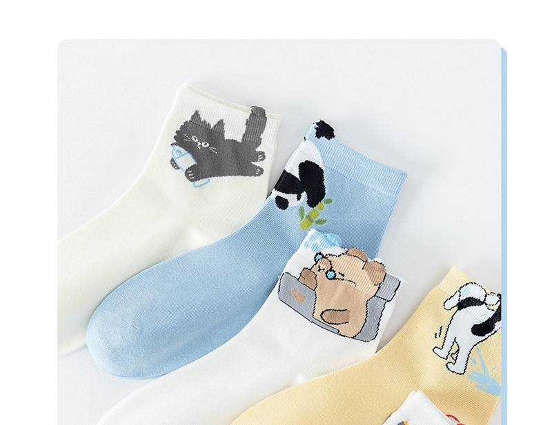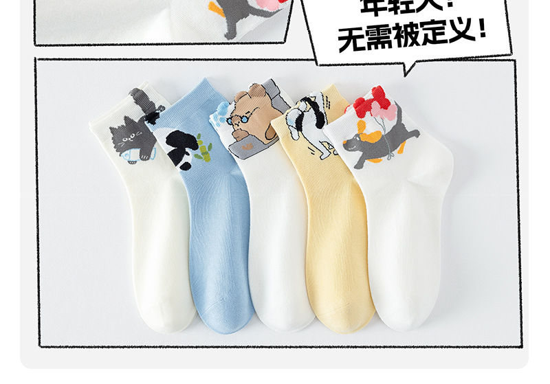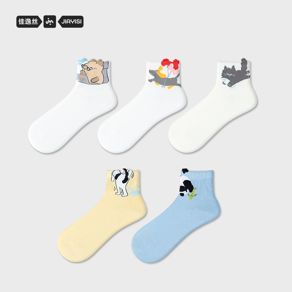 여성용 오리지널 양말 봄 여름 얇은 땀 흡수 및 탈취 귀여운 만화 트렌디 양말 여성용 동물 자수 종아리 양말 보트 양말스토어 가기