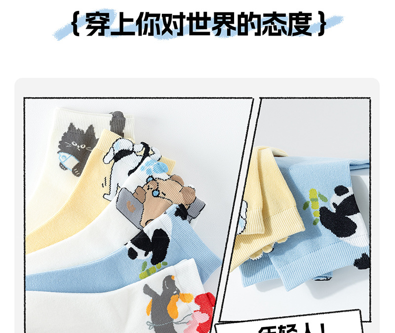 여성용 오리지널 양말 봄 여름 얇은 땀 흡수 및 탈취 귀여운 만화 트렌디 양말 여성용 동물 자수 종아리 양말 보트 양말