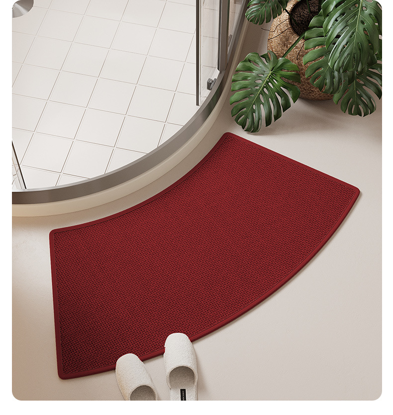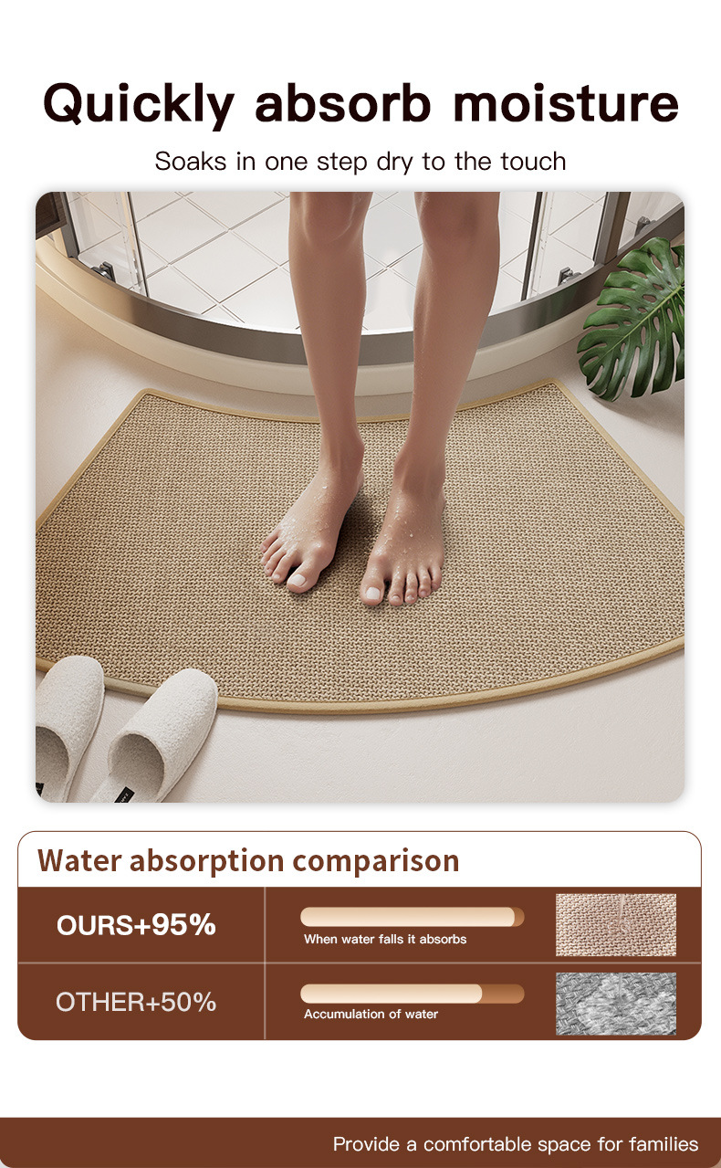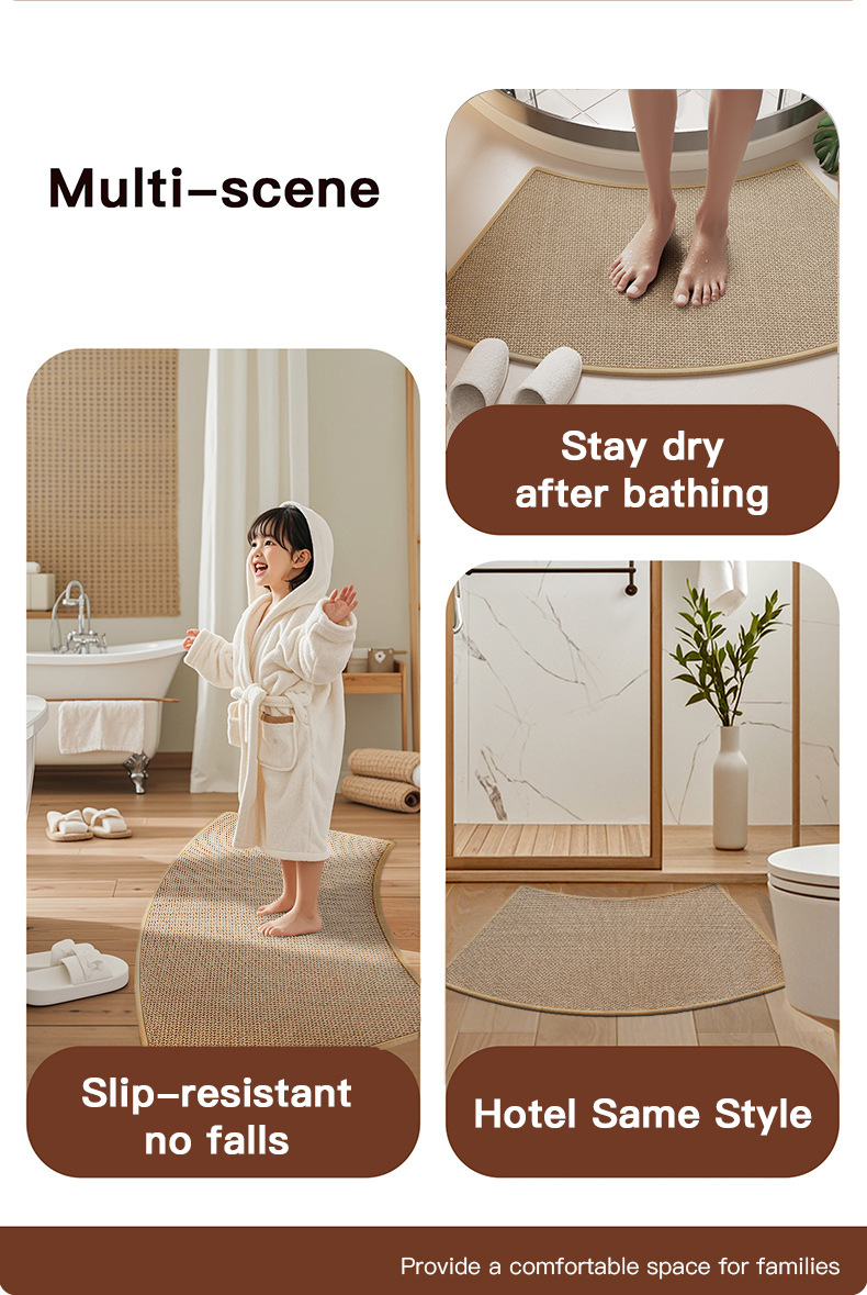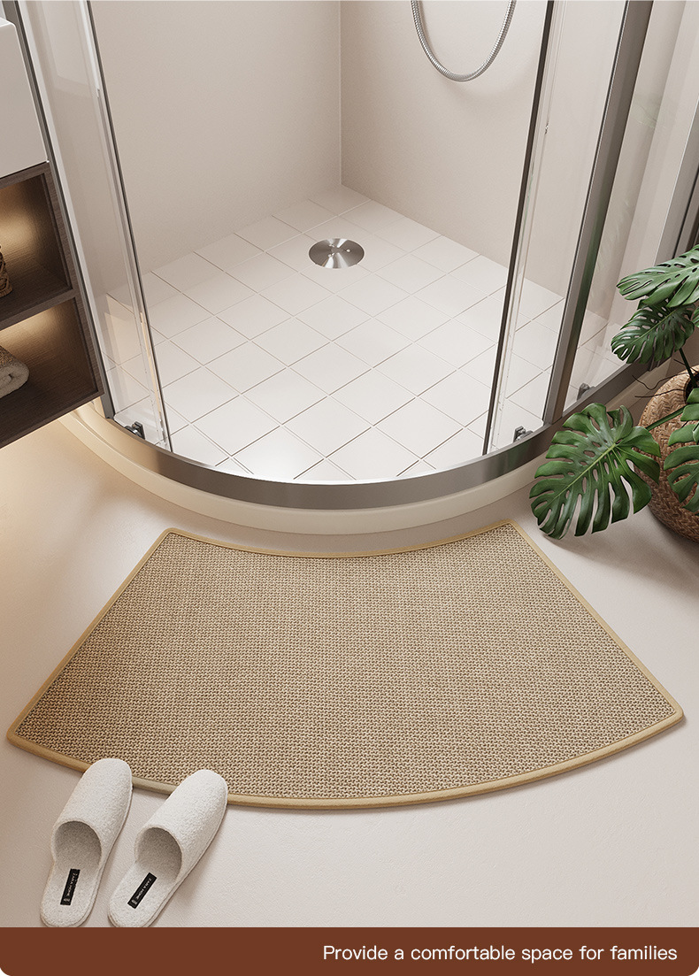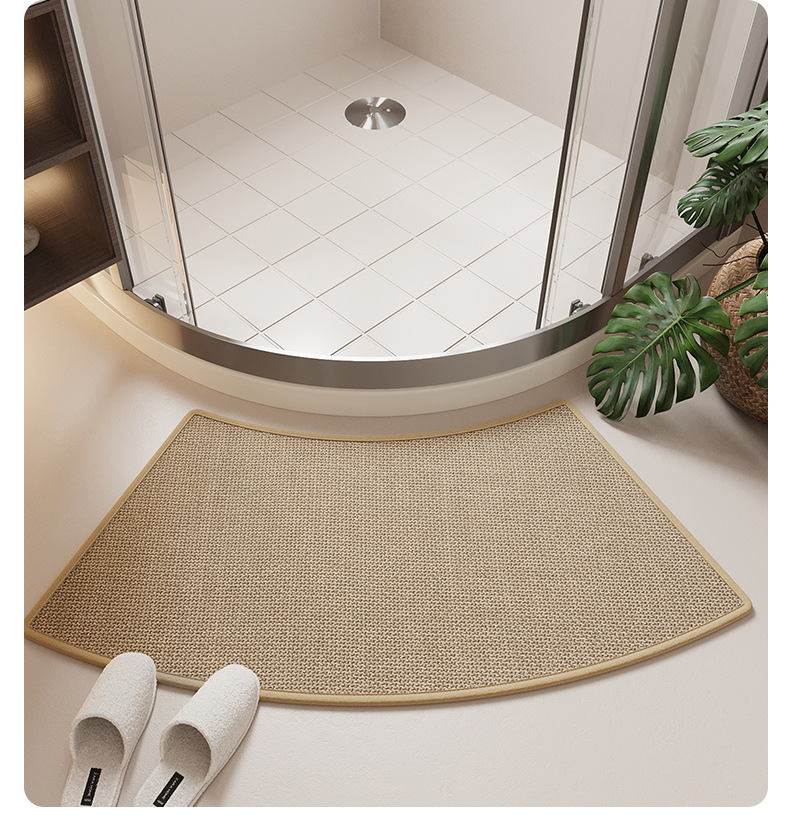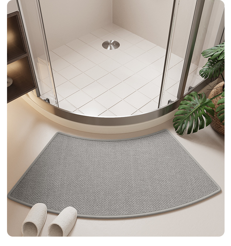 국경 간 곡선 욕실 바닥 매트, 욕실 부채꼴 모양의 모조 린넨 흡수성 발 매트, 화장실 샤워실 문 미끄럼 방지 매트스토어 가기