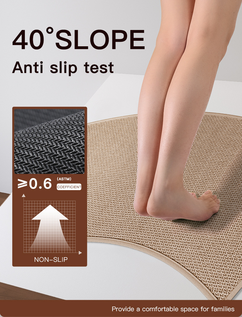 국경 간 곡선 욕실 바닥 매트, 욕실 부채꼴 모양의 모조 린넨 흡수성 발 매트, 화장실 샤워실 문 미끄럼 방지 매트