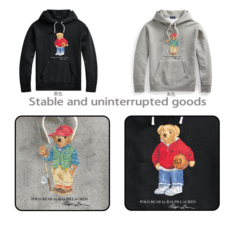 2025 고품질 가을, 겨울 인쇄 곰 남자 후드 티셔츠 청소년 느슨한 코트 플러스 벨벳 두꺼운 스타일 라이트 럭셔리 스타일스토어 가기