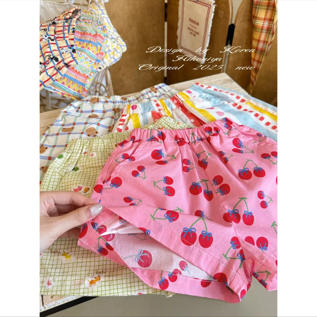 2025년 여름 중대형 아동 캐주얼 에스닉 스타일 부모-자식 동물 프린트 땀 흡수 통기성 얇은 반바지 비치 팬츠