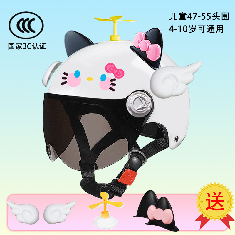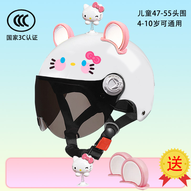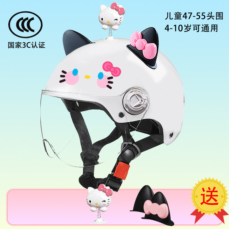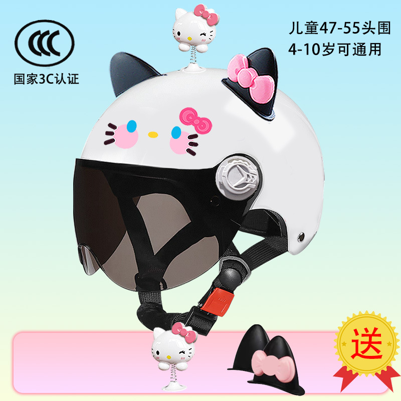 3c 인증 전기 자동차 헬멧 여성 여름 태양 보호 반 헬멧 범용 경량 안전 헬멧 귀여운 케이트 고양이스토어 가기