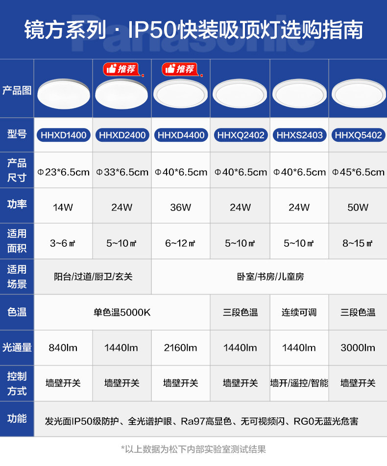 파나소닉 LED 미러 사각형 전체 스펙트럼 침실 거실 천장 조명 IP50 방진 빠른 설치 유도 스마트 APP 램프스토어 가기
