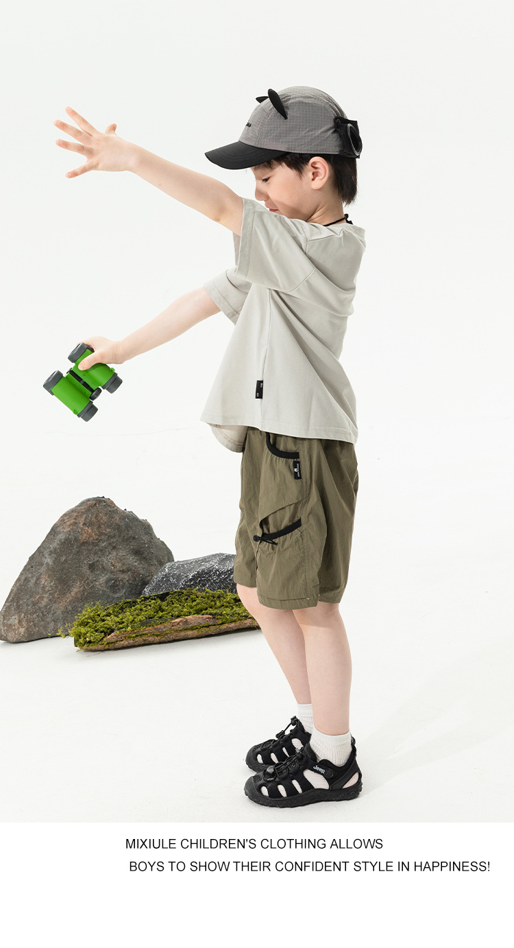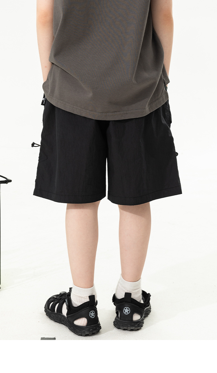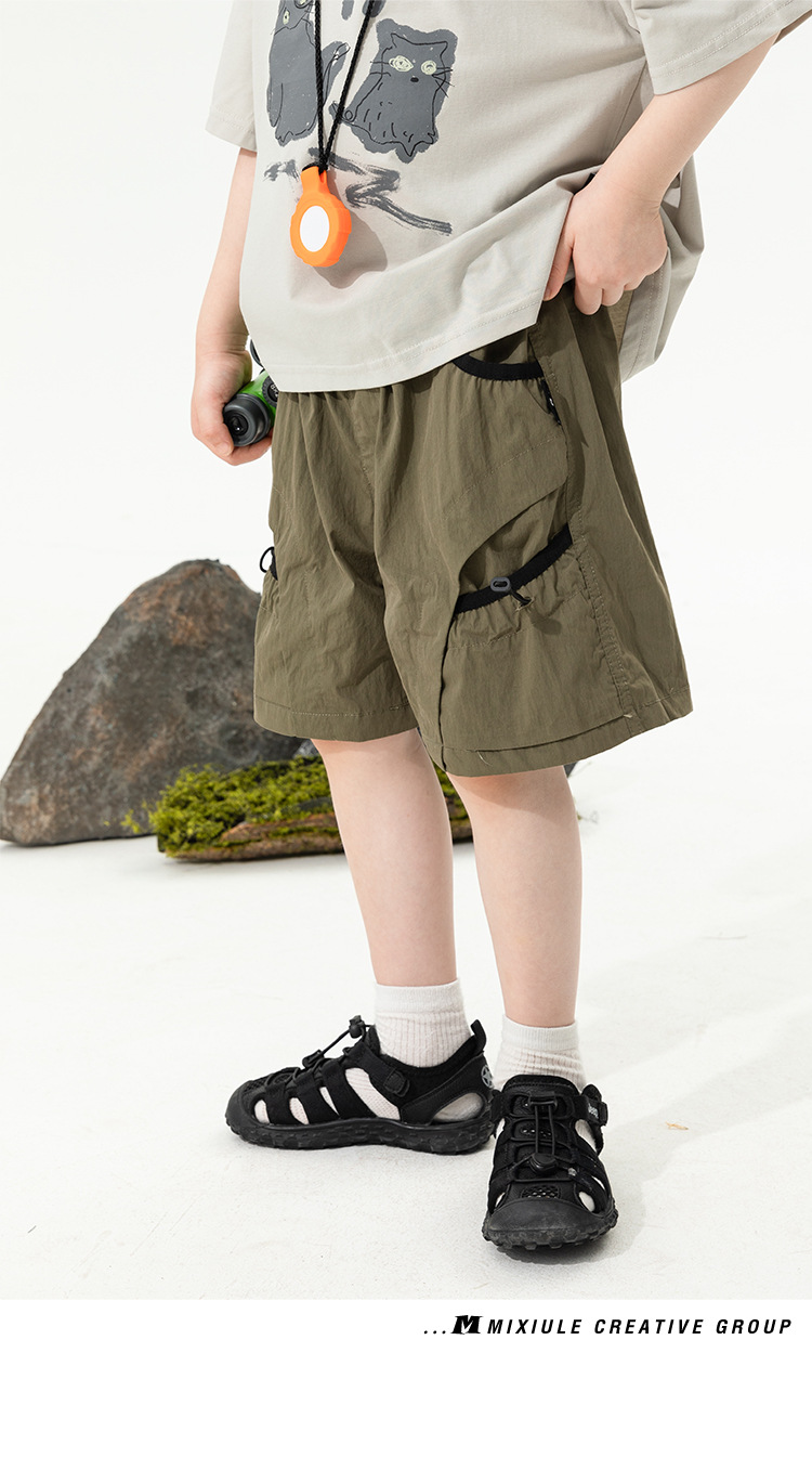 2025 새로운 여름 소년 포켓 대비 색상 반바지 어린이 여름 얇은 작업복 바지 캐주얼 5부 바지