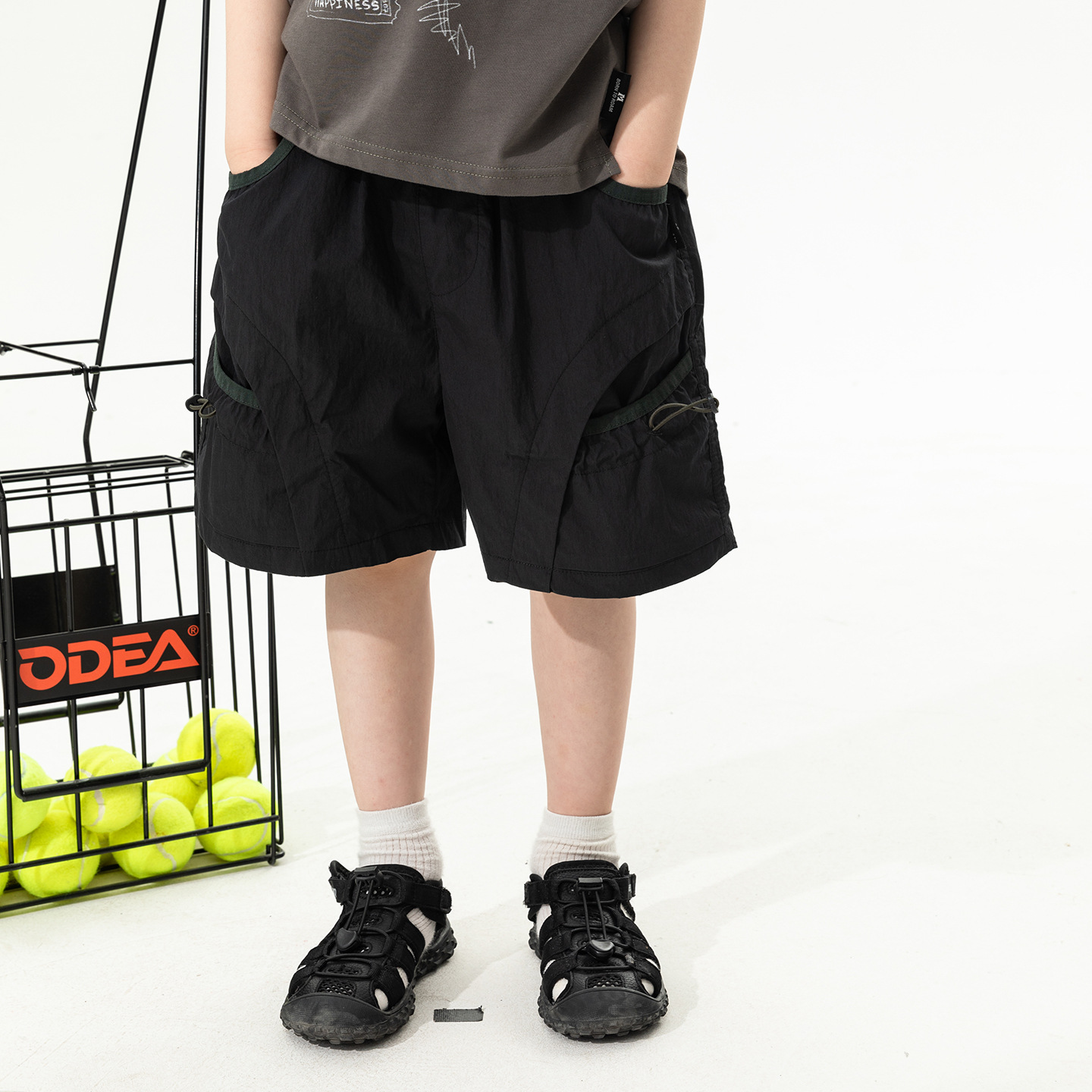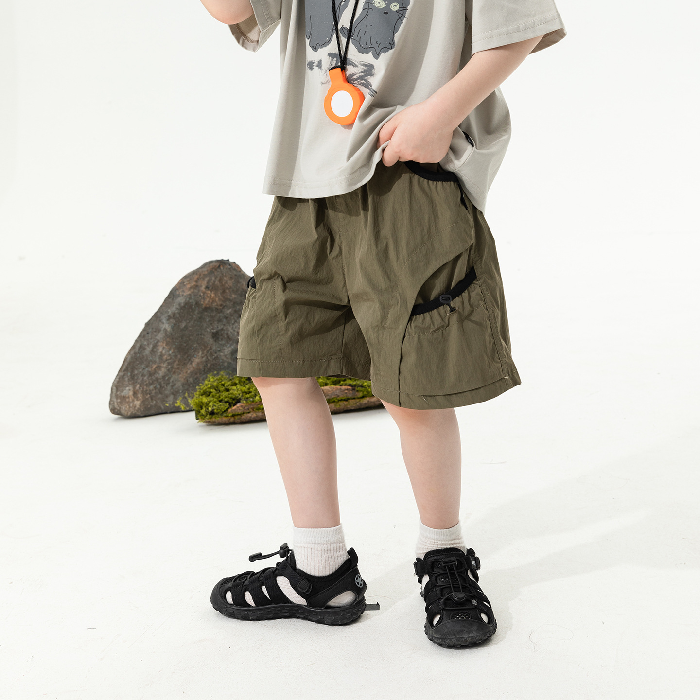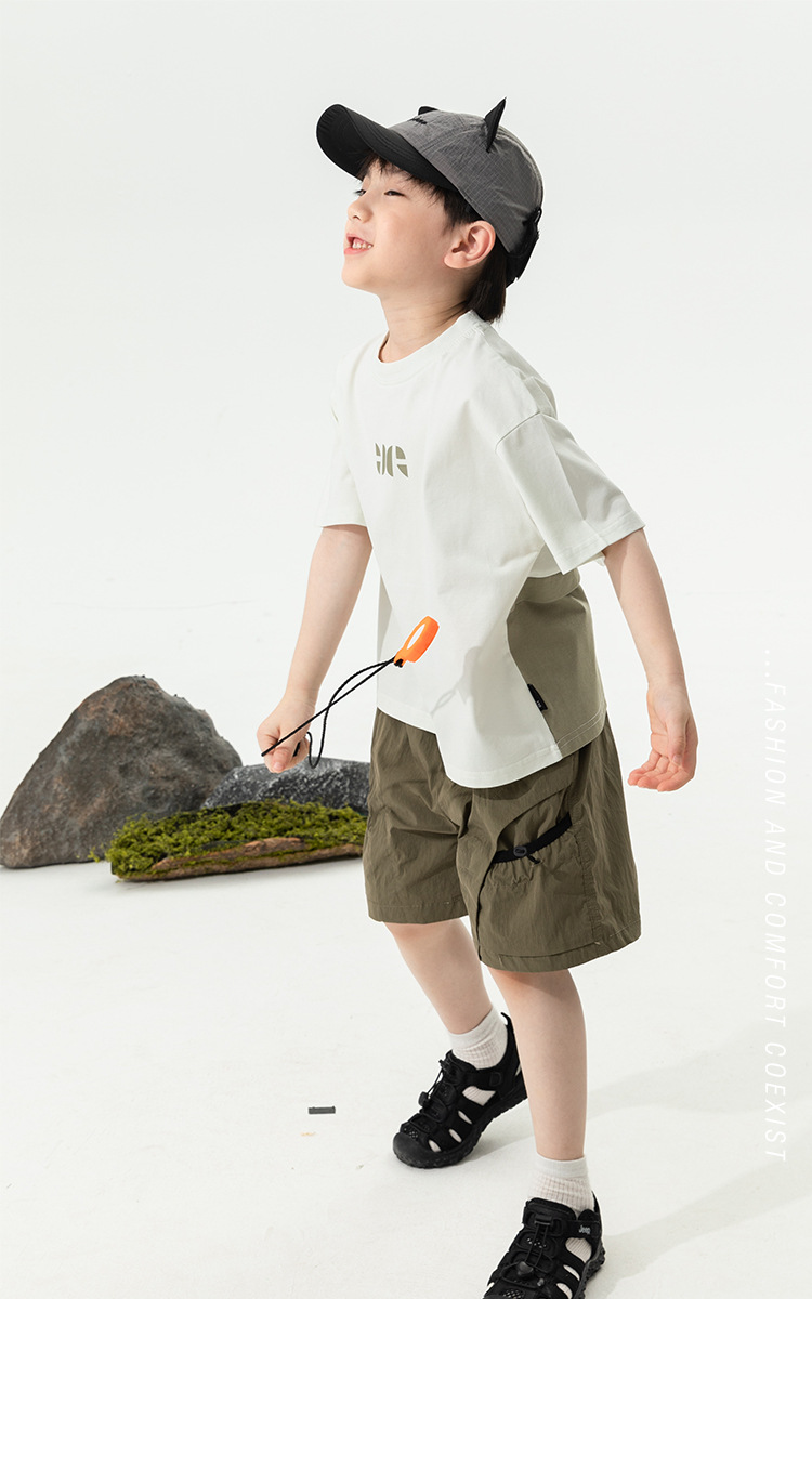 2025 새로운 여름 소년 포켓 대비 색상 반바지 어린이 여름 얇은 작업복 바지 캐주얼 5부 바지