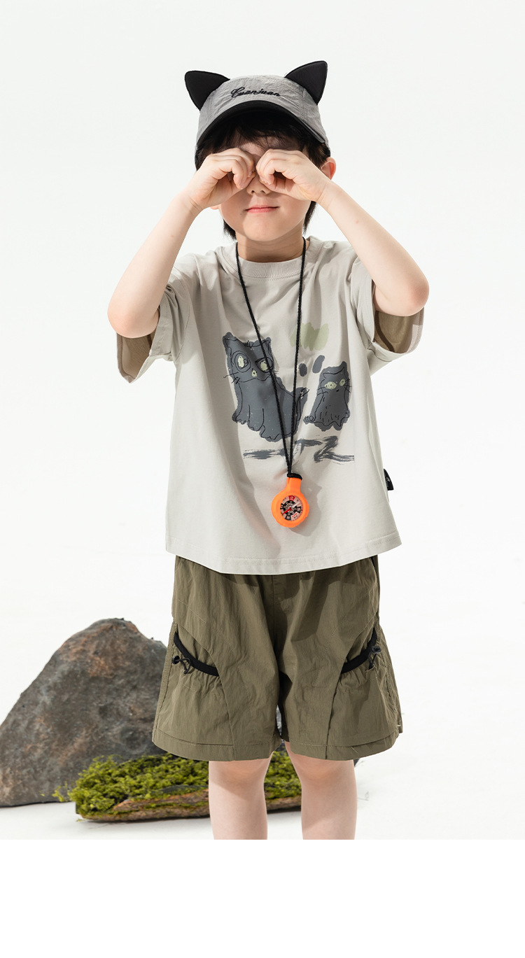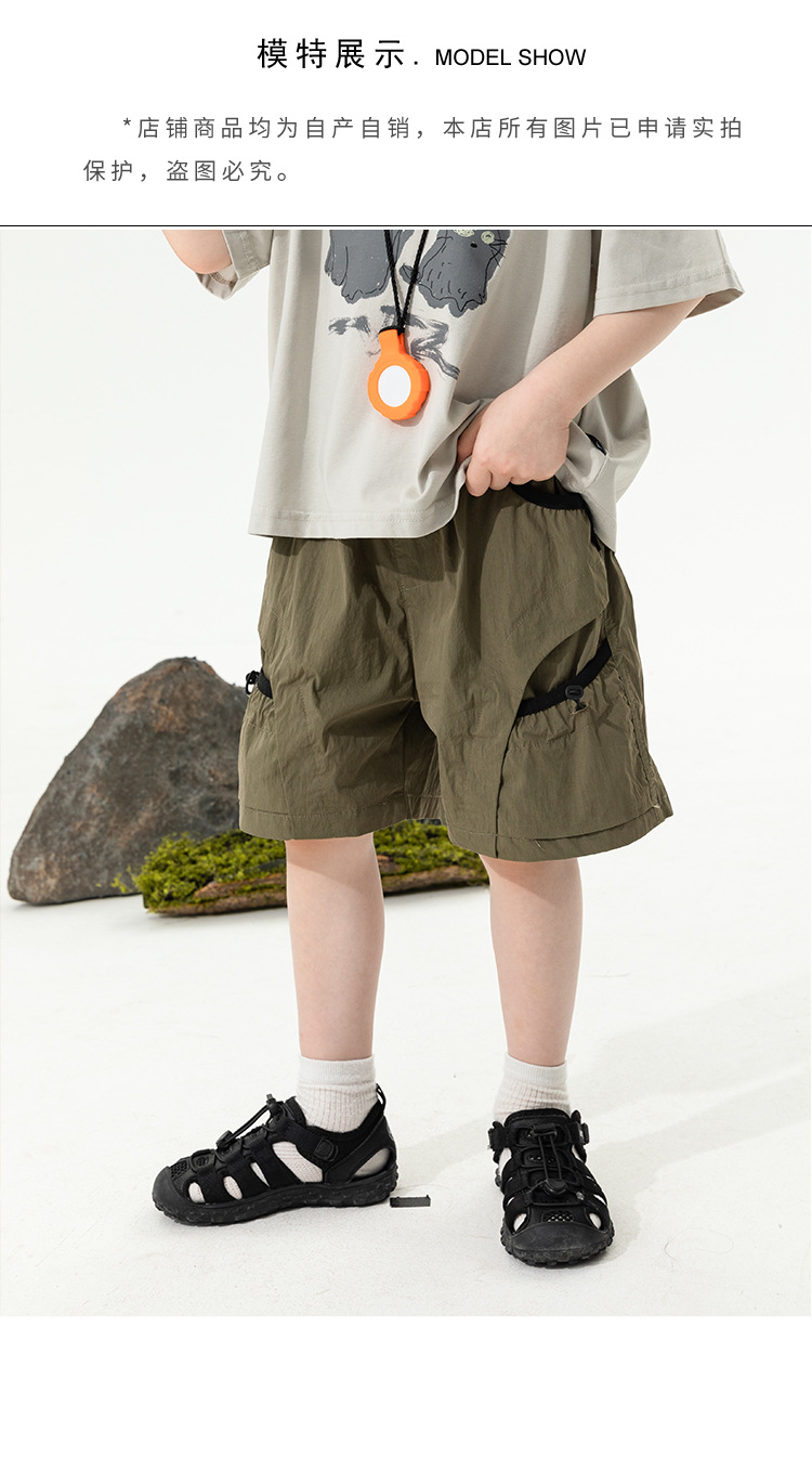 2025 새로운 여름 소년 포켓 대비 색상 반바지 어린이 여름 얇은 작업복 바지 캐주얼 5부 바지스토어 가기