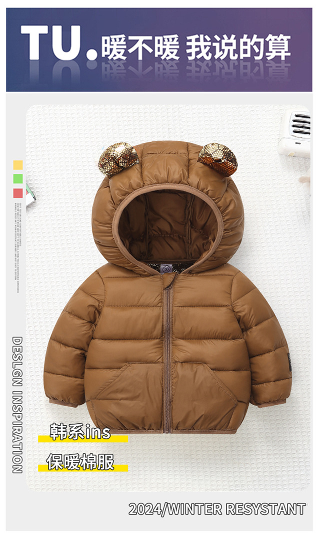 대외 무역 봄, 가을, 겨울 유아용 블랙 골드 면 코트 단색 캔디 소녀 귀여운 면 재킷 소년 스타일 면 코트스토어 가기