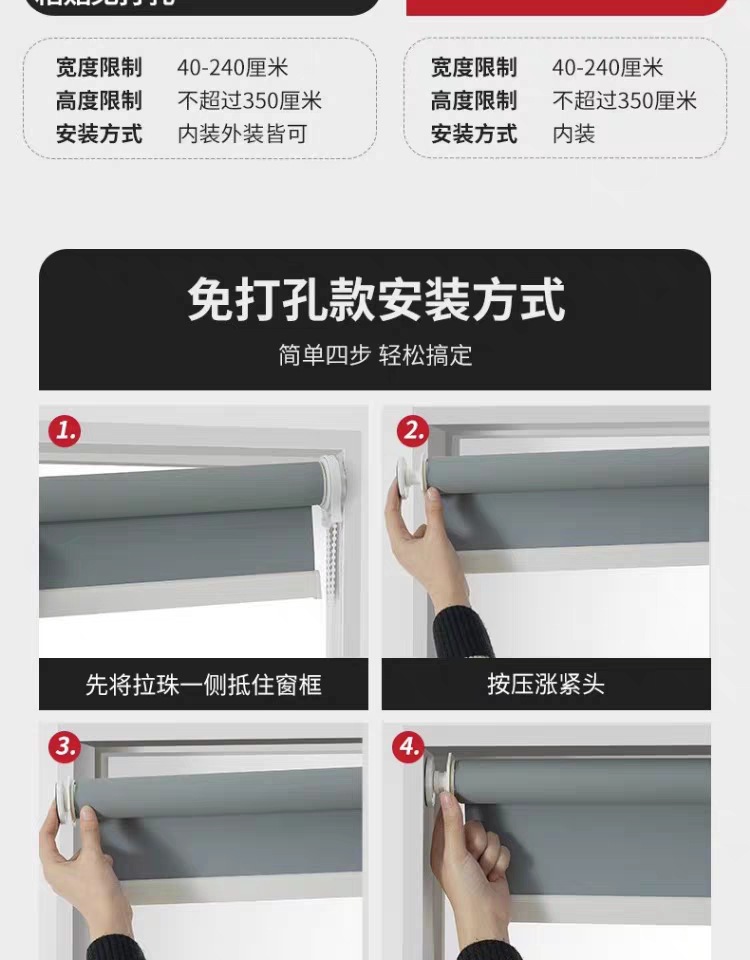 사무실 롤러 블라인드 욕실 주방 발코니 욕실 개폐식 롤러 침실 빛 차단 펀치없는 커튼