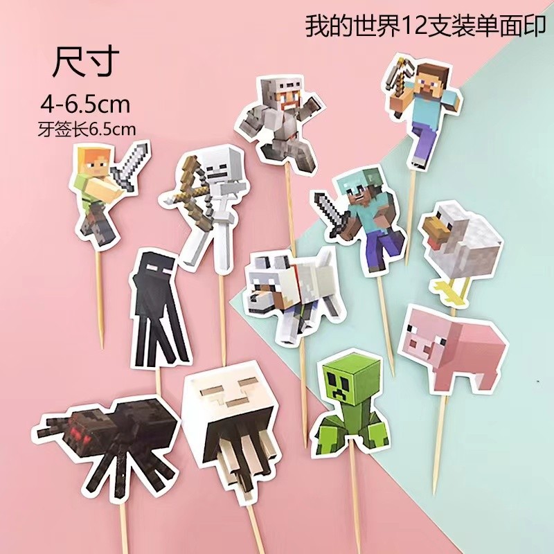 • 빌딩 블록 마인크래프트 카드 이쑤시개 양면 12개