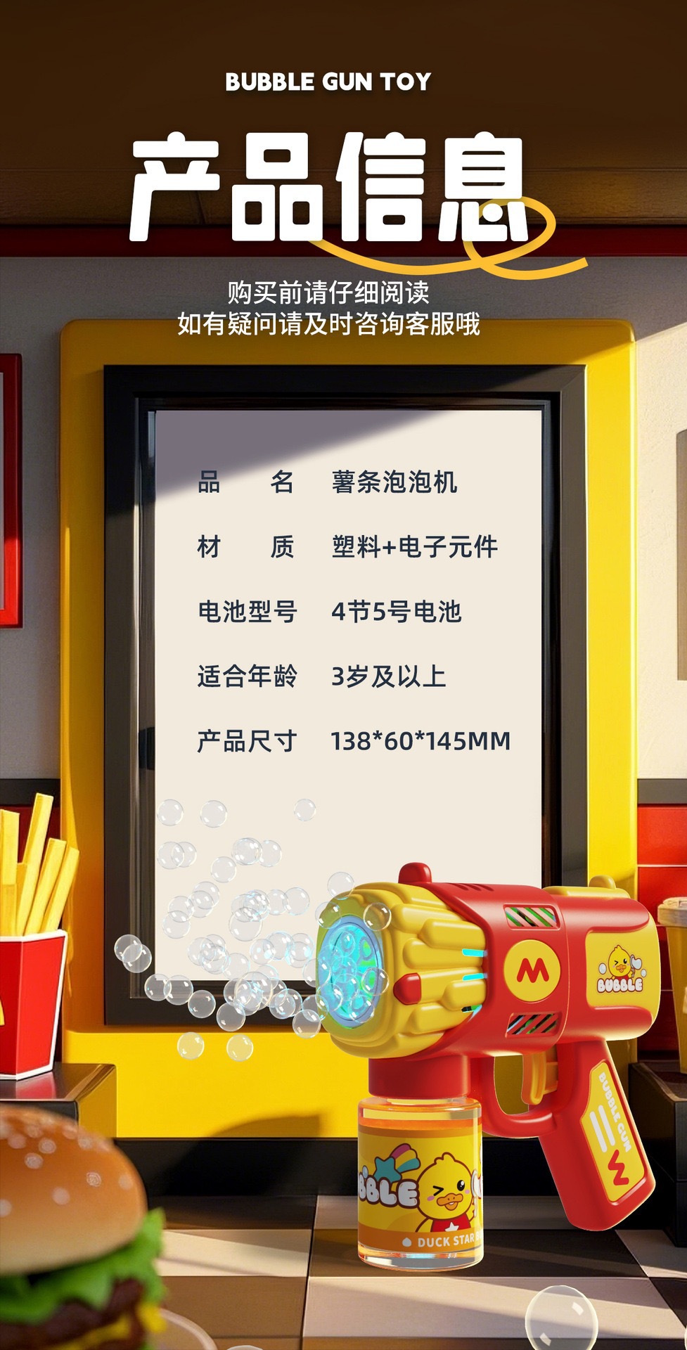 국경 간 신제품 어린이 완전 자동 감자 튀김 버블 건 휴대용 버블 머신 부모-자식 야외 교육 장난감 도매스토어 가기