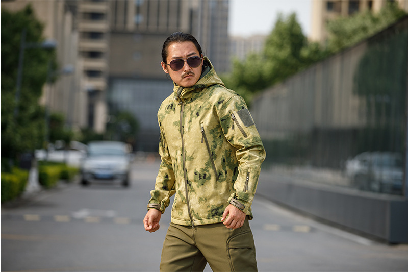 맞춤형 상어 가죽 소프트 쉘 재킷 위장 재킷 양털 두꺼운 전술 재킷 후드 재킷 제조 업체 재고 있음스토어 가기