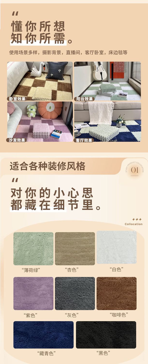 거실용 크로스보더 라이트 럭셔리 접합 바닥 매트, 혼합 및 매치 바닥 매트, 가정용 침실 침대 옆 얼룩 방지 및 관리가 쉬운 바닥 매트스토어 가기