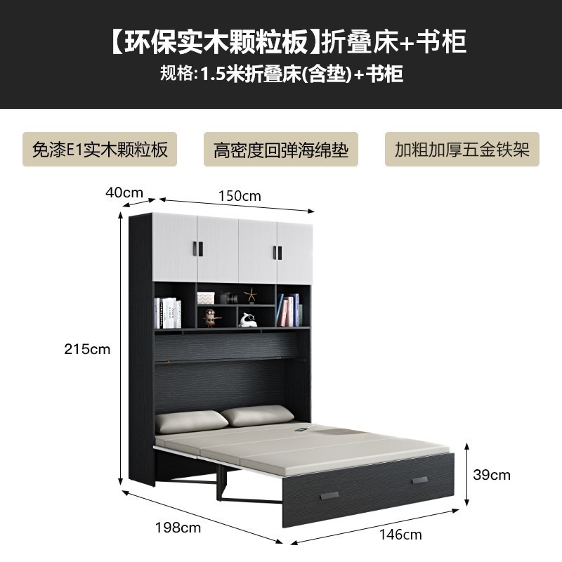 • 1.5m 접이식 침대 + 책장(매트 포함)