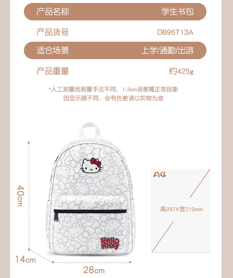 헬로키티 공동 브랜드 책가방 중학생 소녀 헬로키티 여고생 산리오 중학생 배낭