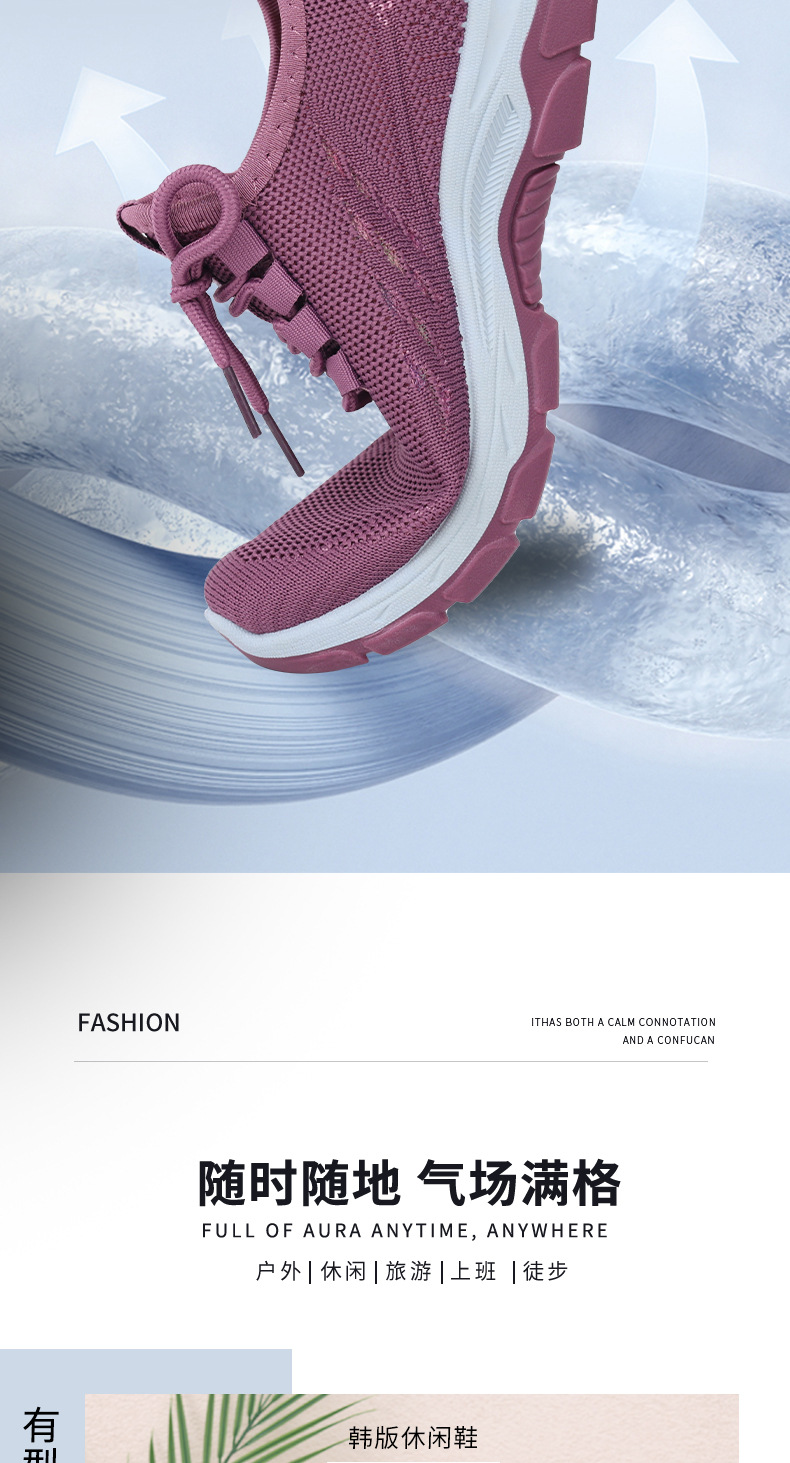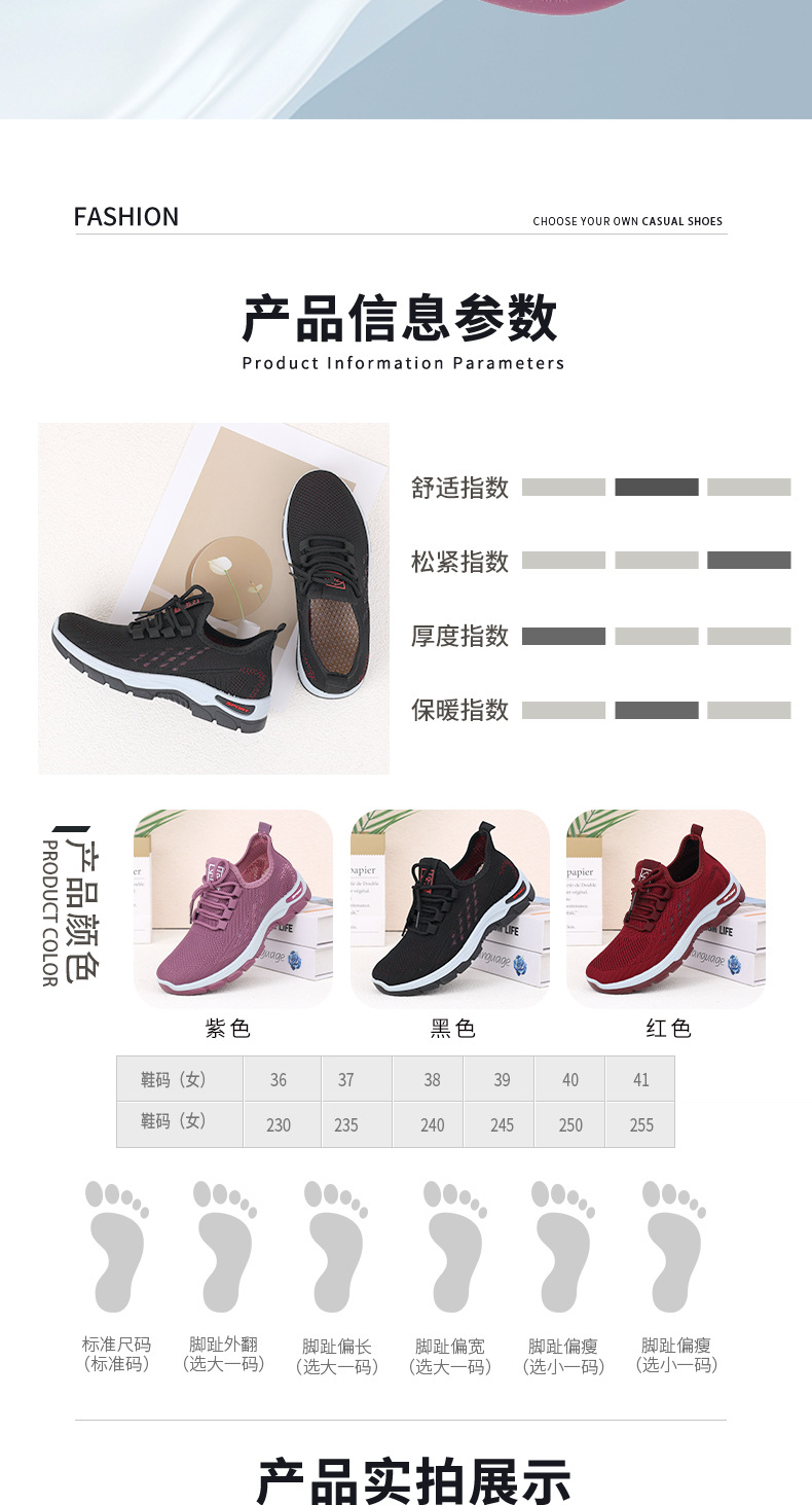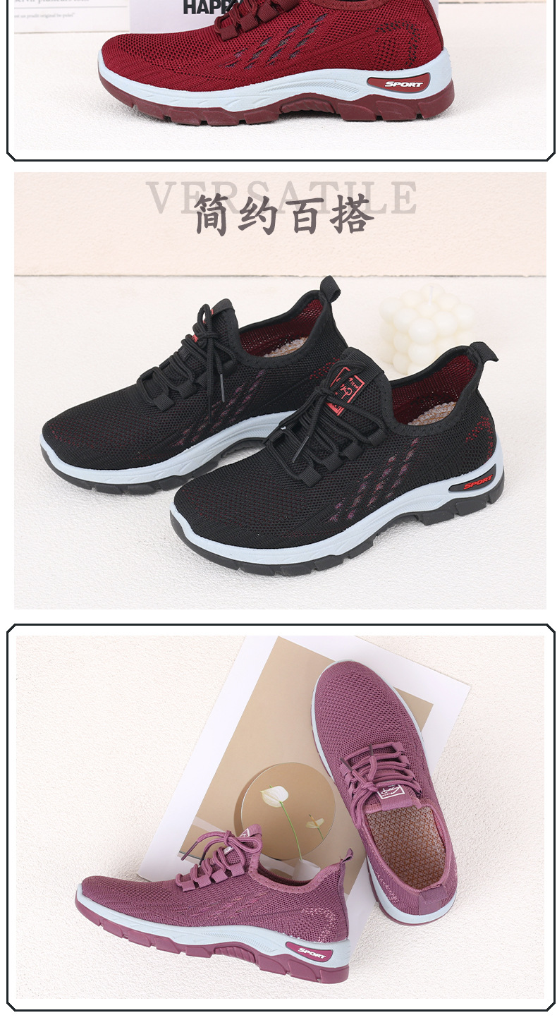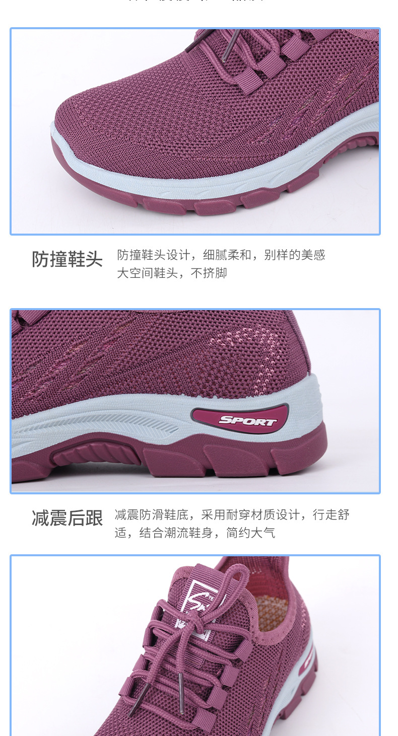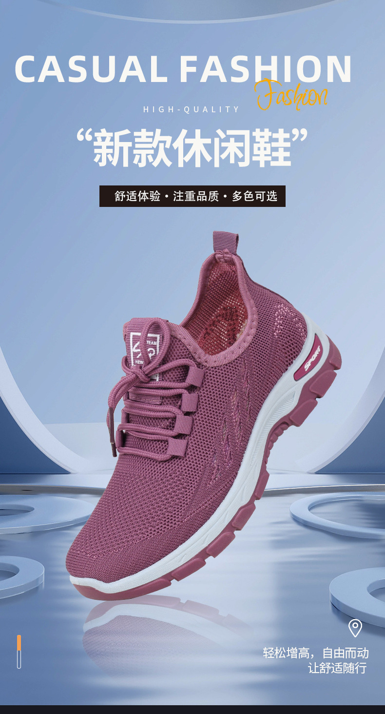 여성을 위한 새로운 스타일의 신발, 통기성이 뛰어난 플라이 니트 탄성 얇은 두꺼운 밑창 미끄럼 방지 스퀘어 댄스 어머니 신발, 레이스 업 베이징 편안함스토어 가기
