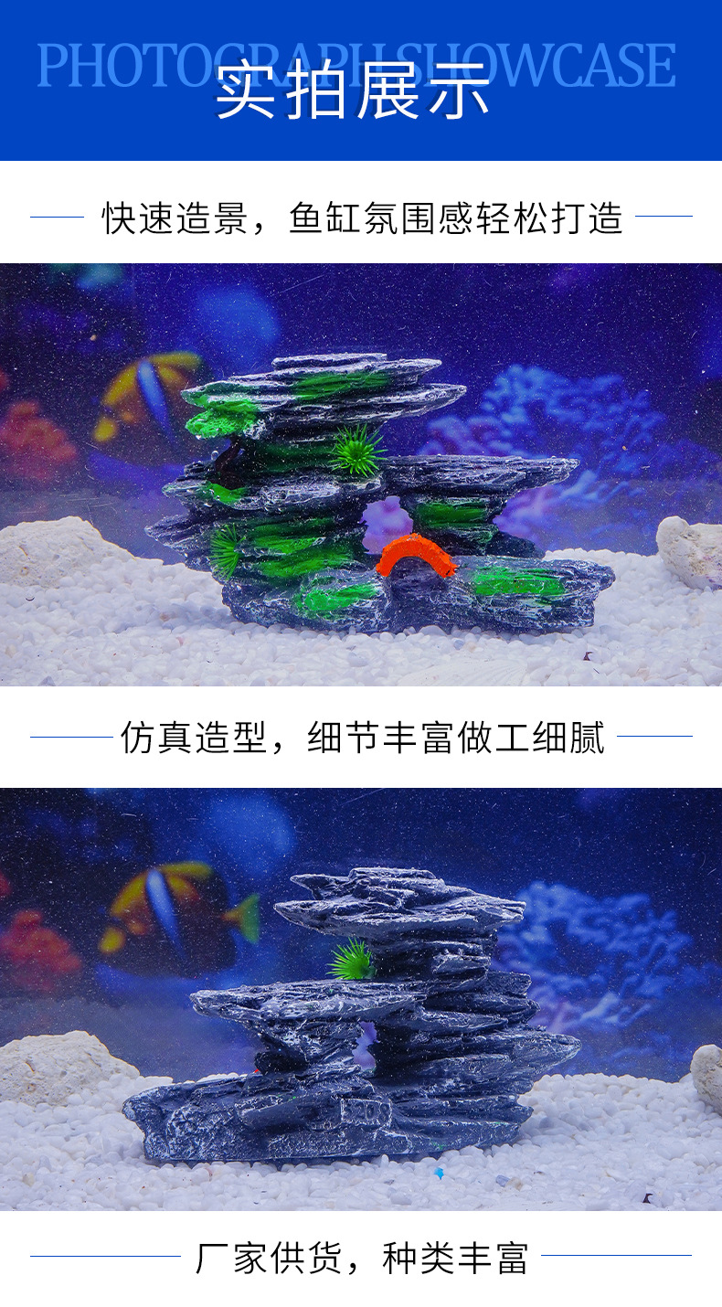가짜 바위 성 장식품, 수조, 물고기와 새우 피난처, 수족관 장식, 수지 시뮬레이션 세트, 가짜 바위 조경