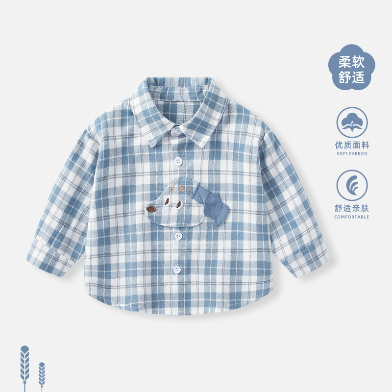 남아 봄 셔츠 신상 남아용 긴팔 체크 셔츠 이너웨어 아동 봄 아기 코트 의류스토어 가기