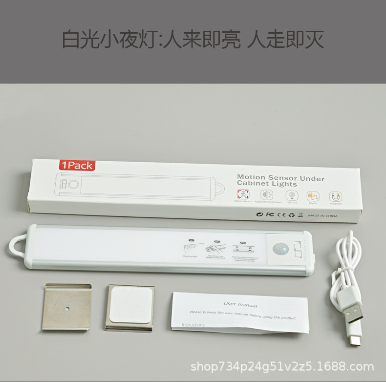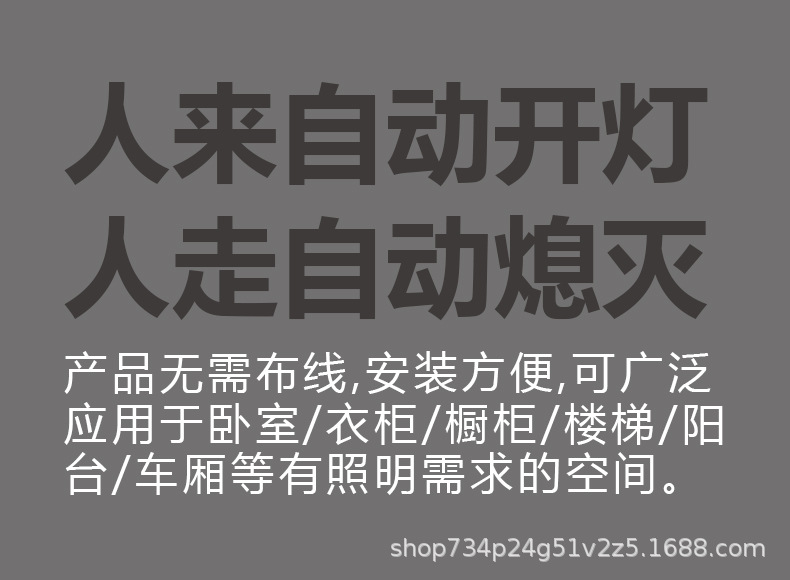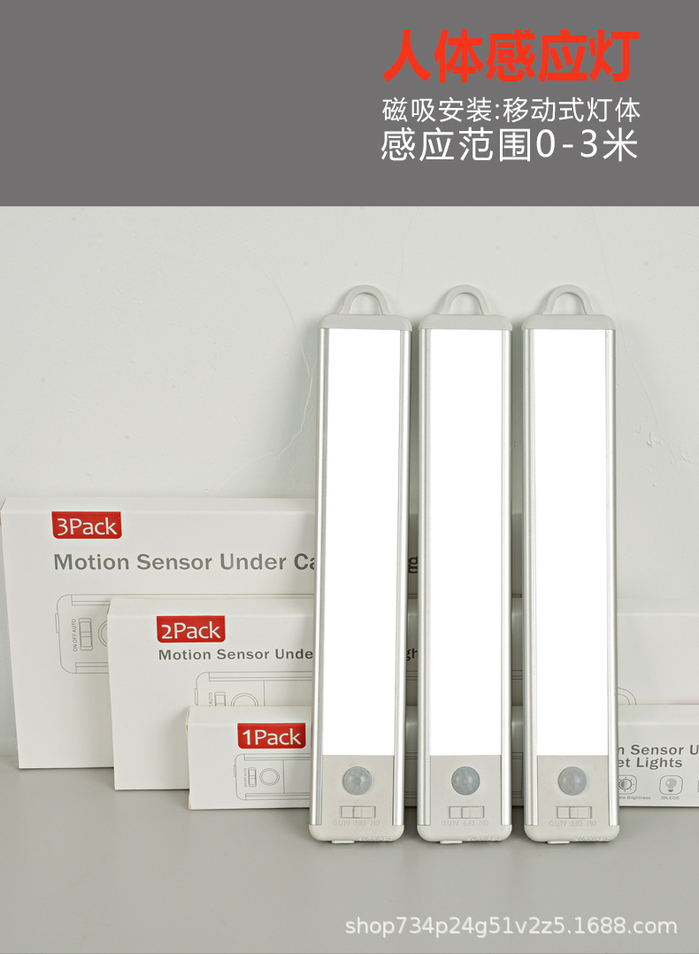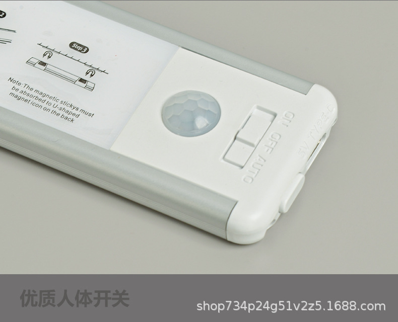 유도등 충전식 스트립 조명 무선 자체 접착 LED 초박형 옷장 조명 캐비닛 입구 교수형 야간 조명스토어 가기