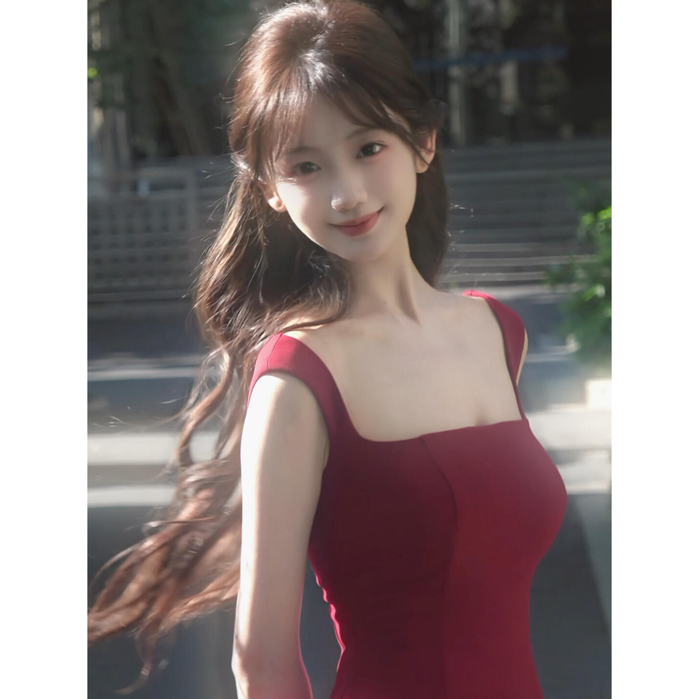 여성용 화이트 서스펜더 드레스, 여름 첫사랑, 시원한 느낌의 화이트 달빛 핀치 웨이스트 스커트, 프렌치 민소매 롱 스커트스토어 가기
