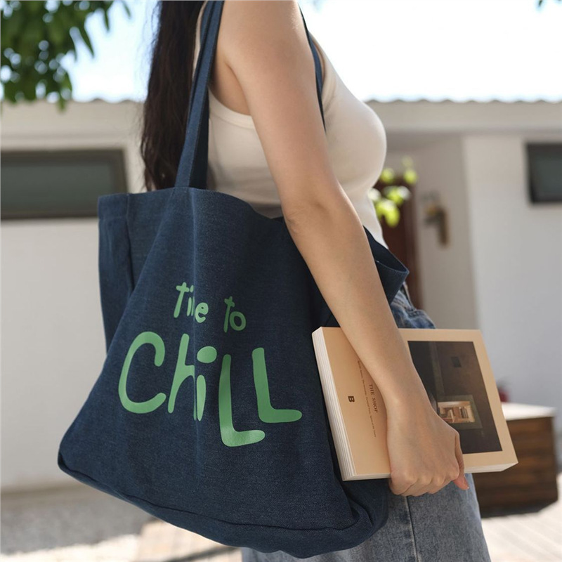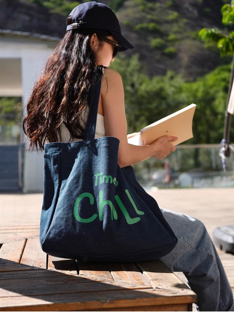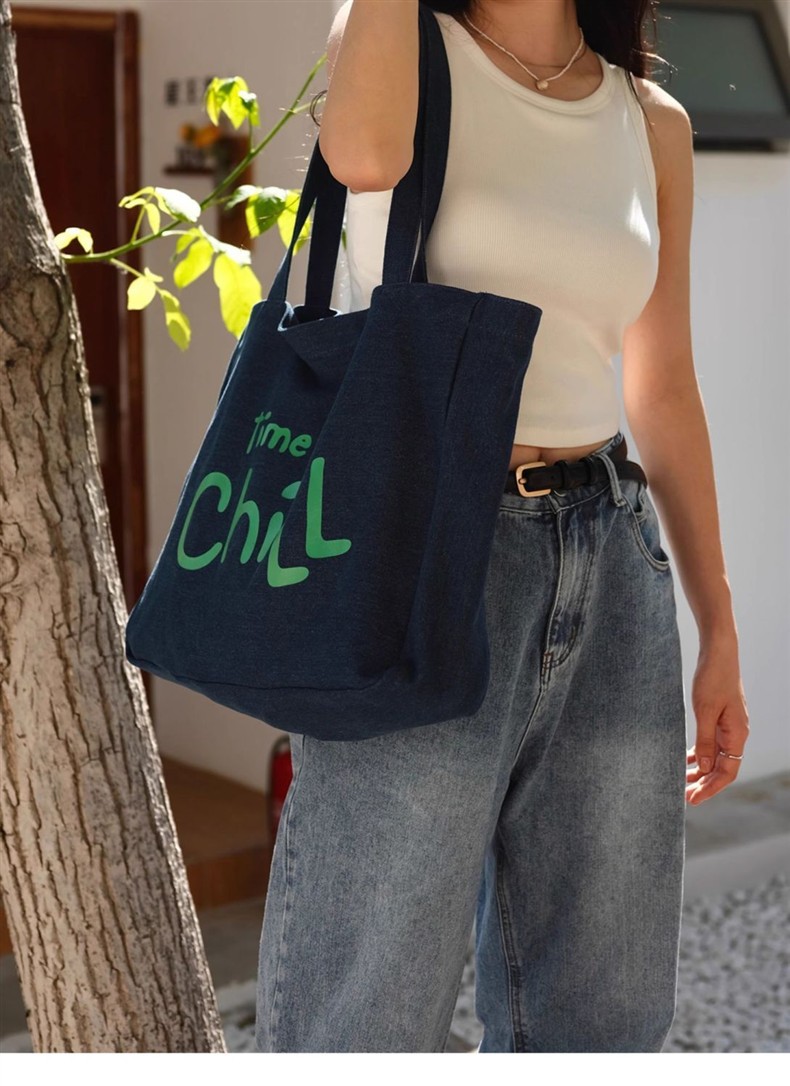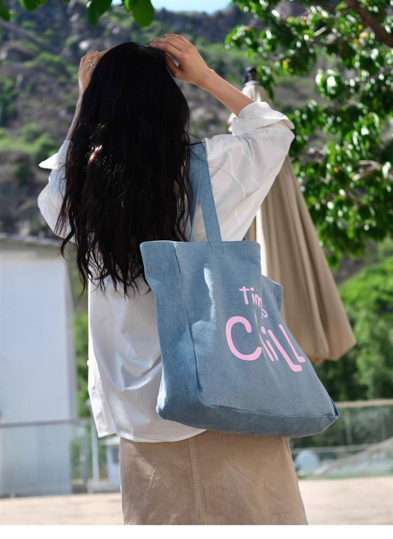 MokayaFrin 오리지널 앤티크 데님 캔버스 백 봄 여름 심플하고 다재다능한 대용량 틈새 피트니스 토트 백
