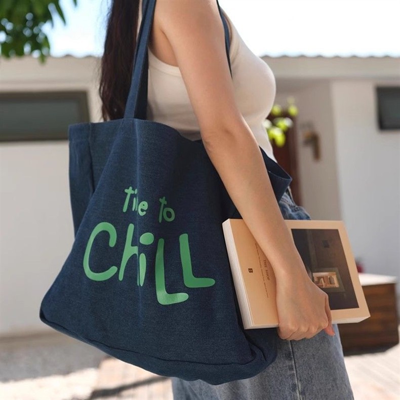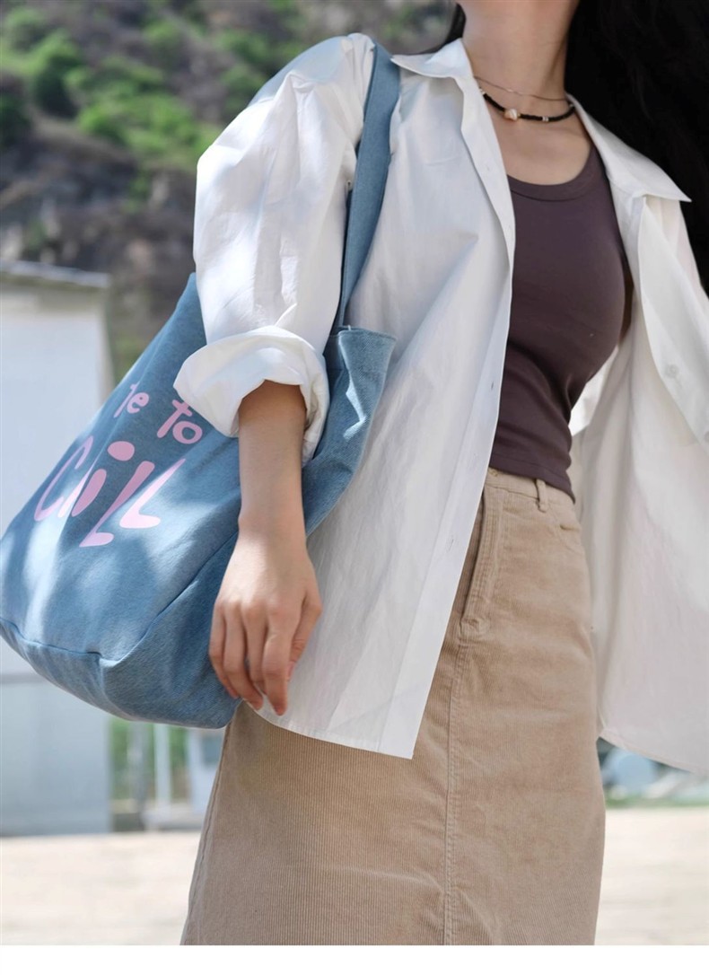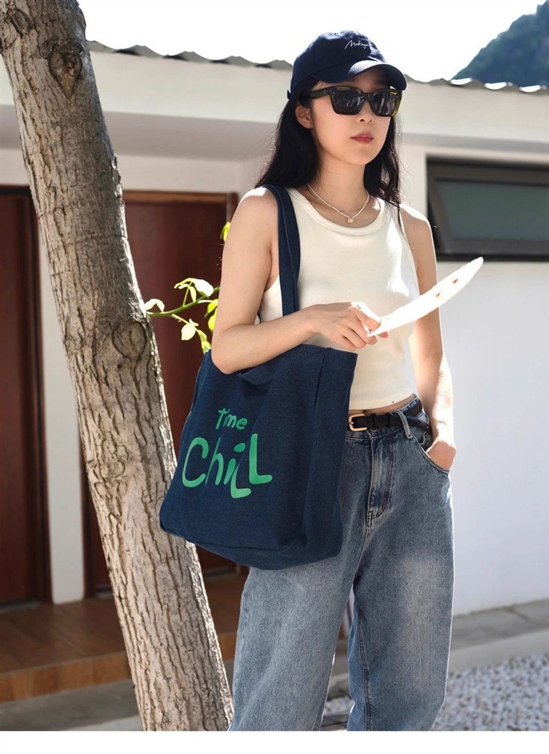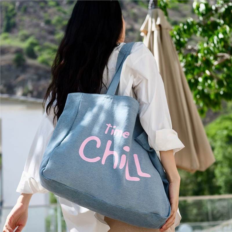 MokayaFrin 오리지널 앤티크 데님 캔버스 백 봄 여름 심플하고 다재다능한 대용량 틈새 피트니스 토트 백